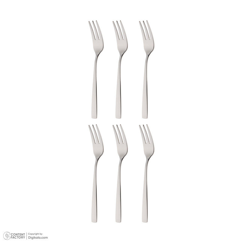 سایر توضیحات | شامل 6 عدد چنگال میوه خوری به ابعاد 15×3×1 سانتیمتر/استیل 18/10 ضدزنگ |