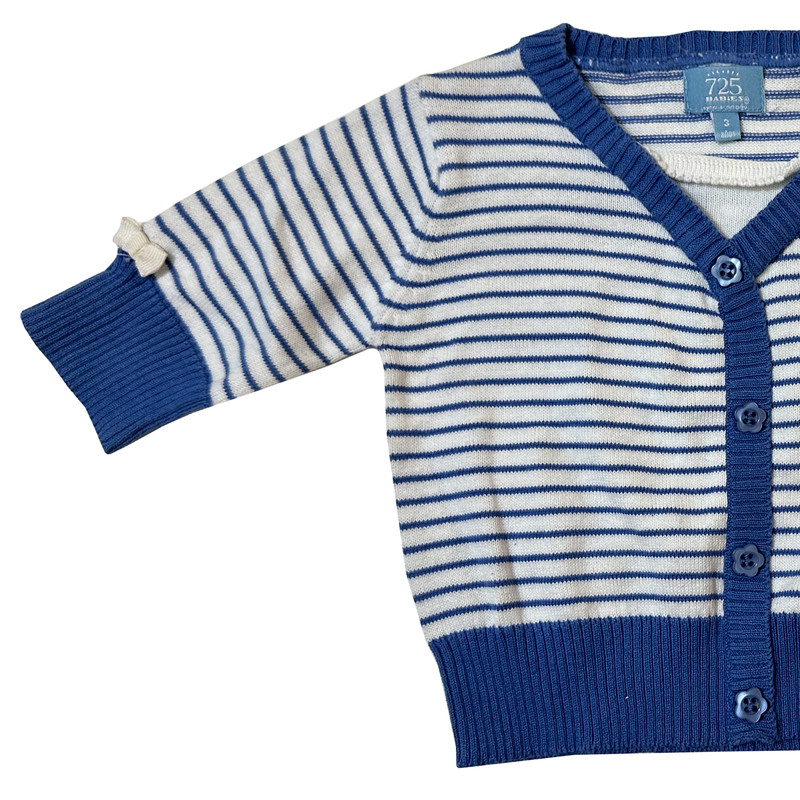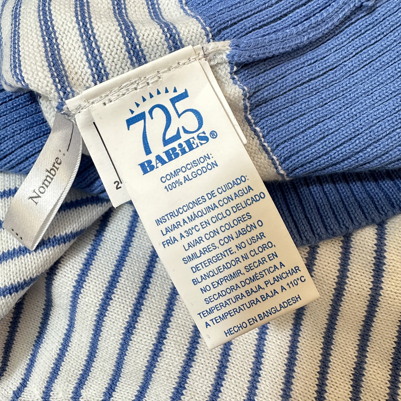ژاکت نوزادی برند 725 بابیس (725 BABiES) دارای 4 دکمه در جلو می باشد. همچنین این ژاکت دارای سر آستین کشی همراه با پاپیون تزئینی می باشد. برند مبدا کالا مکزیک و تولید شده در بنگلادش است. جنس این ژاکت فوق العاده با کیفیت از 100 درصد پنبه تشکیل شده است.