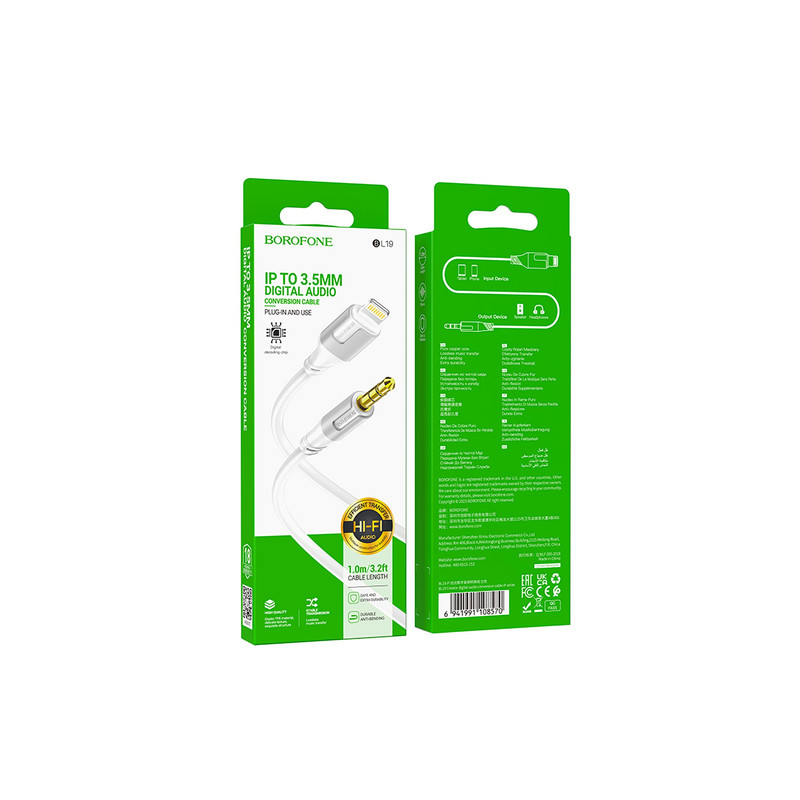 سایر توضیحات | جنس روکش کابل : TPE هسته تشکیل دهنده کابل : 10/0.10BC*3C OD3.8mm لایتنینگ به کانکتور 3.5 میلی متر قابلیت( HIFI AUDIO ) جهت تولید صدا با بالاترین کیفیت ، قابلیت ثبت طیف گسترده از صدا ، دارای دامنه پویا پشتیبانی از فناوری Anti-Bending جهت جلوگیری از آسیب به کابل در حین کشیدگی وخم شدگی انتقال صدا به صورت استریو طول کابل : 1 متر وزن : 19.3 گرم دارای گواهینامه QC PASS جهت تایید بررسی و آزمونهای کیفیت سنجی دارای استاندارد های بین المللی |