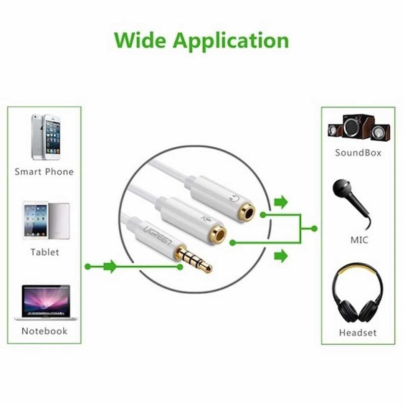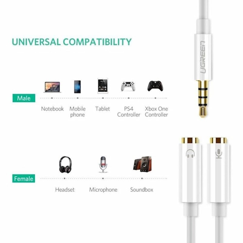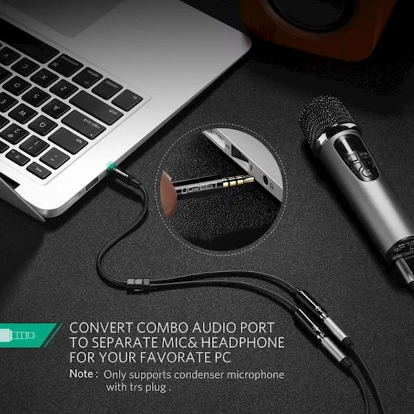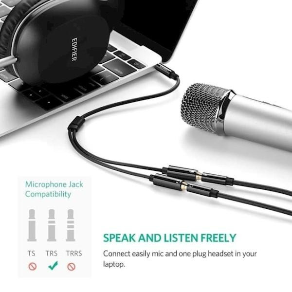 کابل تبدیل 1 به 2 صدا 3.5 میلی متری یوگرین AV141 به شما امکان می دهد همزمان هدفون، بلندگو و یا یک میکروفون را به یک سوکت جک 3.5 در لپ تاپ متصل کنید. هر دو جک به طور مستقیم با آیکون های هدفون و میکروفون مشخص شده اند تا در اتصال لوازم جانبی خود مشکلی نداشته باشید. AV141 از مواد با کیفیت بالا ساخته شده است که در برابر آسیب های مکانیکی جزئی مانند شکستگی یا ساییدگی مقاوم است. لازم به ذکر است طول این کابل 20 سانتی متر میباشد.