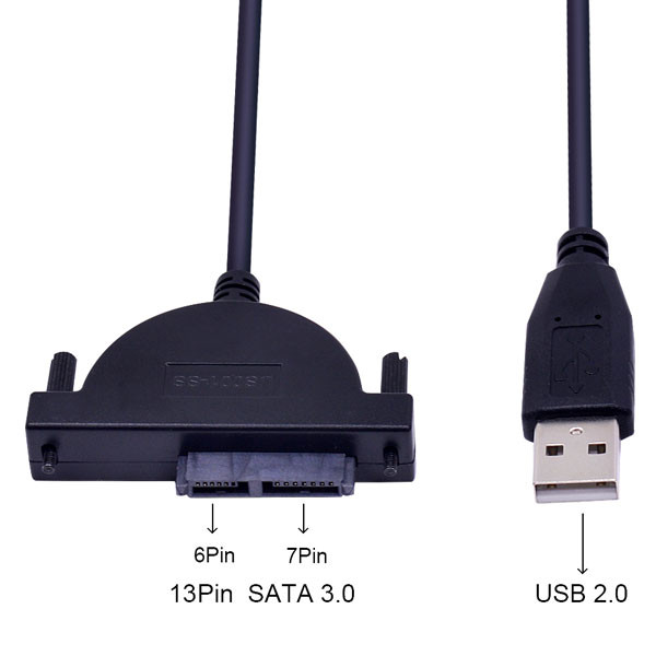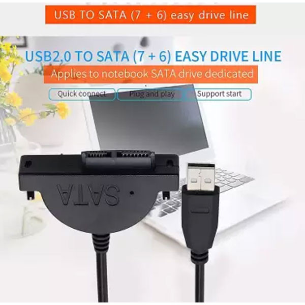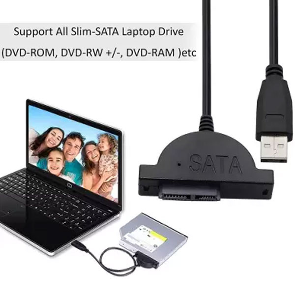 درایو نوری 7+6 پین Slimline SATA را از طریق پورت USB به رایانه برای تست و انتقال داده آسان وصل کنید از هر درایو نوری Slimline SATA CD/DVD از حالت گذرگاه USB پشتیبانی کنید. بدون نیاز به برق خارجی از هر درایو نوری Slimline SATA CD/DVD (7MM/9.5MM/12.7MM) پشتیبانی می کند. هارد دیسک یا درایو دسکتاپ را پشتیبانی نمی کند.