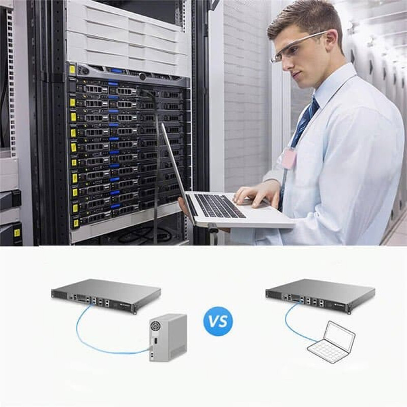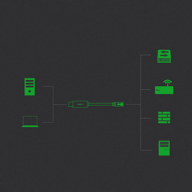 این کابل دارای یک USB 2.0 بوده و یک RJ45 میباشد. با این کابل به راحتی میتوانید لپ تاپ خود را از طریق کابل به شبکه متصل کنید.این کابل با دستگاه های Cisco, Ubiquiti, TP-Link, Linksys, Juniper, Fortigate, Mikrotik, Huawei سازگار است.