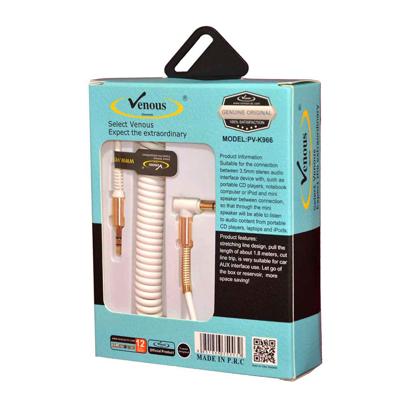 شکل ظاهری کابل انتقال صدای مدل PV-K966 «ونوس» فنری است. همین ویژگی باعث میشود که برای نگهداری آن به فضای کمتری نیاز داشته باشیم و به اندازه دلخواه، طول آن را با کشیدن کابل کم یا زیاد کنیم. همچنین کابل PV-K966 در دو طرف خود جک ۳٫۵ میلیمتری دارد و میتوانیم یکطرف آن را به لپ تاپ، گوشی موبایل، تبلت یا هر دستگاه دیجیتال دیگری وصل کرد که دارای درگاه ۳٫۵ میلیمتری است.