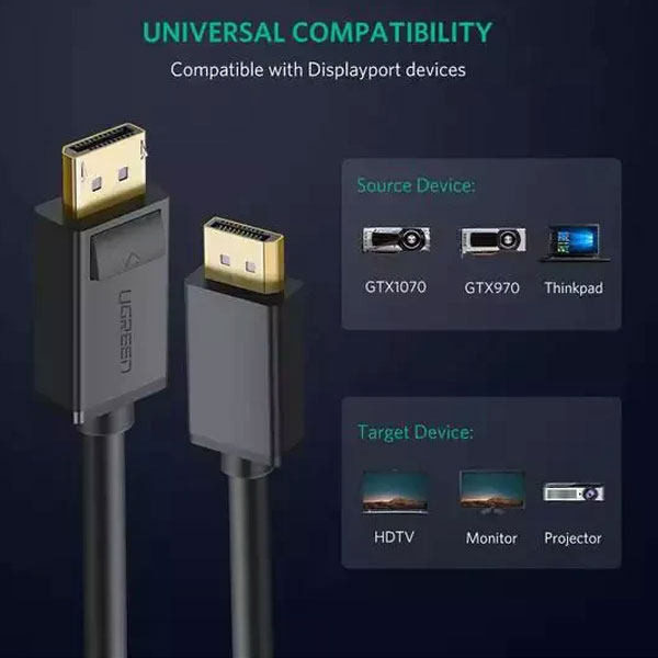 با کابل Display Port یوگرین مدل DP102-10211 میتوانید تصویر را از یک کامپیوتر مجهز به DisplayPort را به HDTV، مانیتور یا پروژکتور منتقل کنید. این کابل دارای کیفیت 4K@60Hz میباشد.