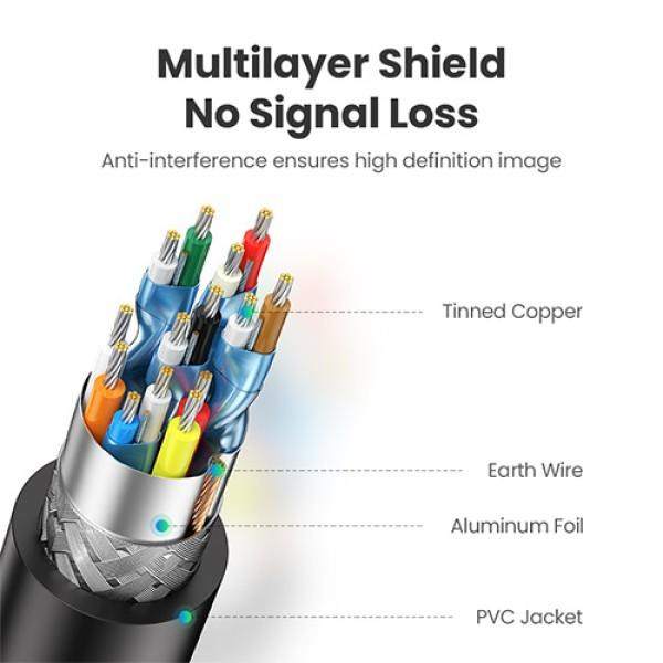 مدل «HD104» از سری کابلهای شرکت «یوگرین»(Ugreen) کابلی مناسب برای انتقال تصاویر است. شما میتوانید از این کابل برای انتقال و بهاشتراکگذاشتن تصاویر میان دستگاههای مجهز به درگاه HDMI خود استفاده کنید. در هر سمت این کابل یک کانکتور HDMI قرار گرفته که با انواع دستگاههای دارای این درگاه سازگار است. این کابل 3 متر طول دارد و رشتههای سیمی داخل آن با روکشی از جنس پلاستیک پوشانده شدهاند. این کابل HDMI دارای کانکتورهایی با روکشی از جنس فلز طلاست؛ بنابراین میتوانید با خیالی آسوده از آن استفاده کنید و از بابت نویز نگرانی نداشته باشید. بنابراین، اگر قصد دارید تصاویر را میان دستگاههایی مانند رایانه، تلویزیون، پخشکنندهی DVD و دستگاههای مشابه به اشتراک گذاشته و خیالتان راحت باشد که کابل HDMIتان هیچ تأثیر سویی در کیفیت تصاویر ایجاد نمیکند. این مدل از اتصال اترنت نیز پشتیبانی می کند و از دیگر قابلیت های آن می توان به پشتیبانی 3D و رزولوشن 4K اشاره داشت.