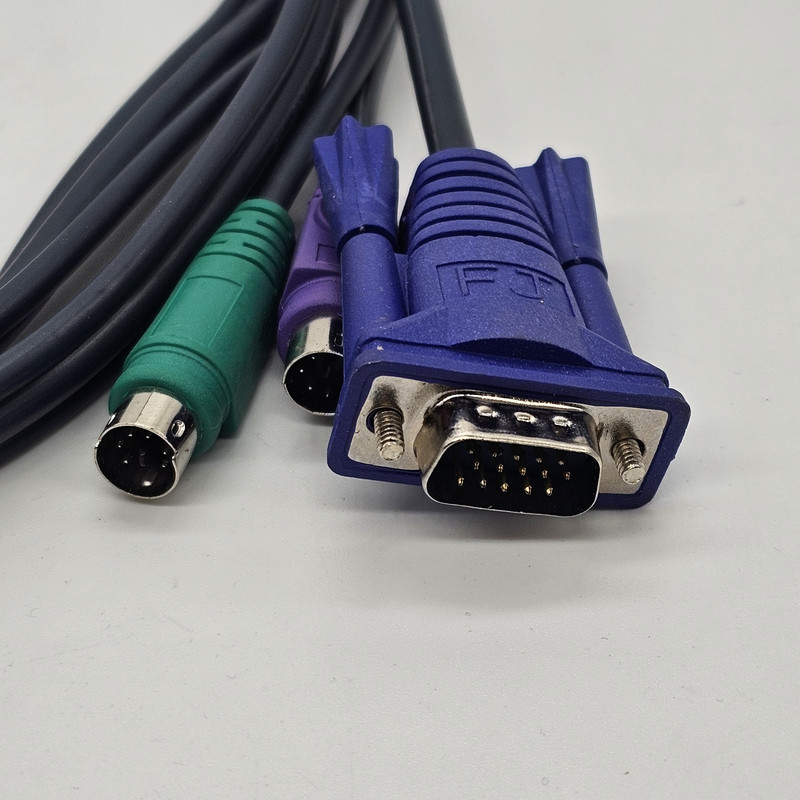 | مشخصات فنی | -نوع اتصال : PS/۲ -۱۵Pin Male -اتصالات مربوط به PC : کیبورد: ۶pin Mini-DIN Male ماوس: ۶pin Mini-DIN Male مانیتور: HDB-۱۵ Male -اتصالات مربوط به KVM : کیبورد: ۶pin Mini-DIN Male - Purple موس: ۶pin Mini-DIN Male - Green مانیتور: ۱۵pin HD DB type Male - Blue طول کابل ۱.۵متر |