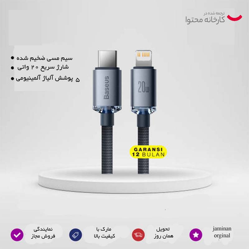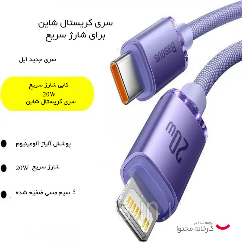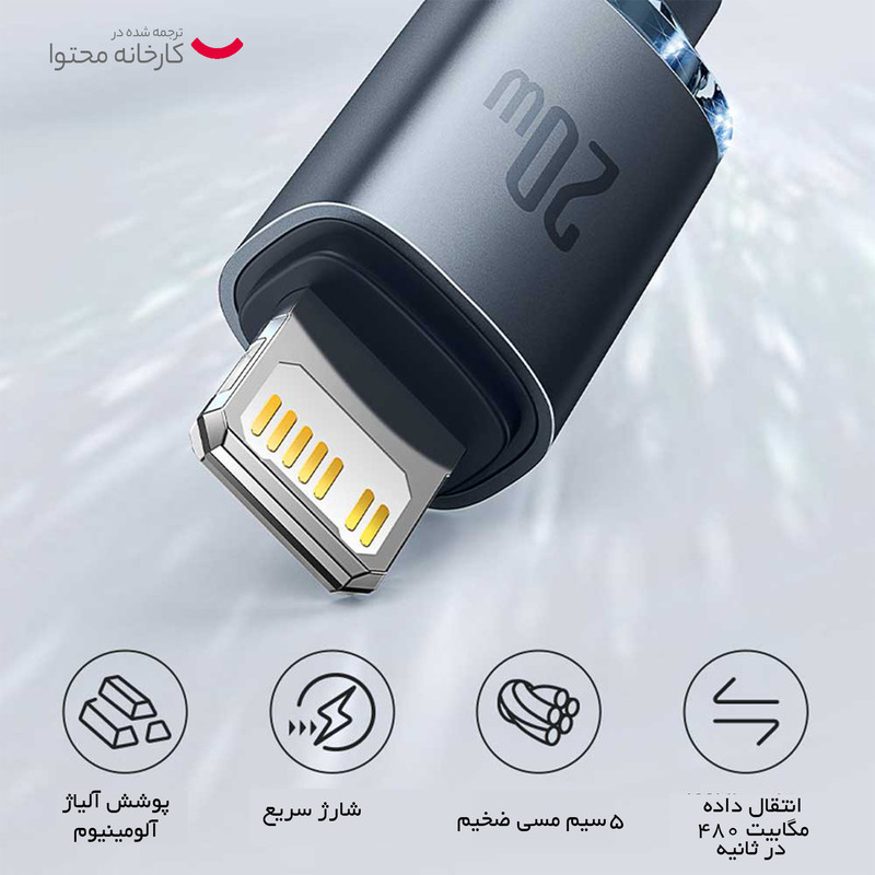 کابل USB-C به لایتنینگ باسئوس مدل Crystal Shine Series 20W طول 1.2 متر