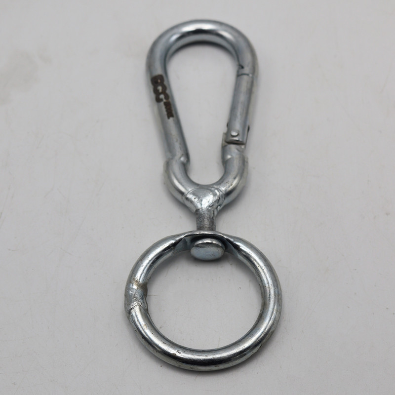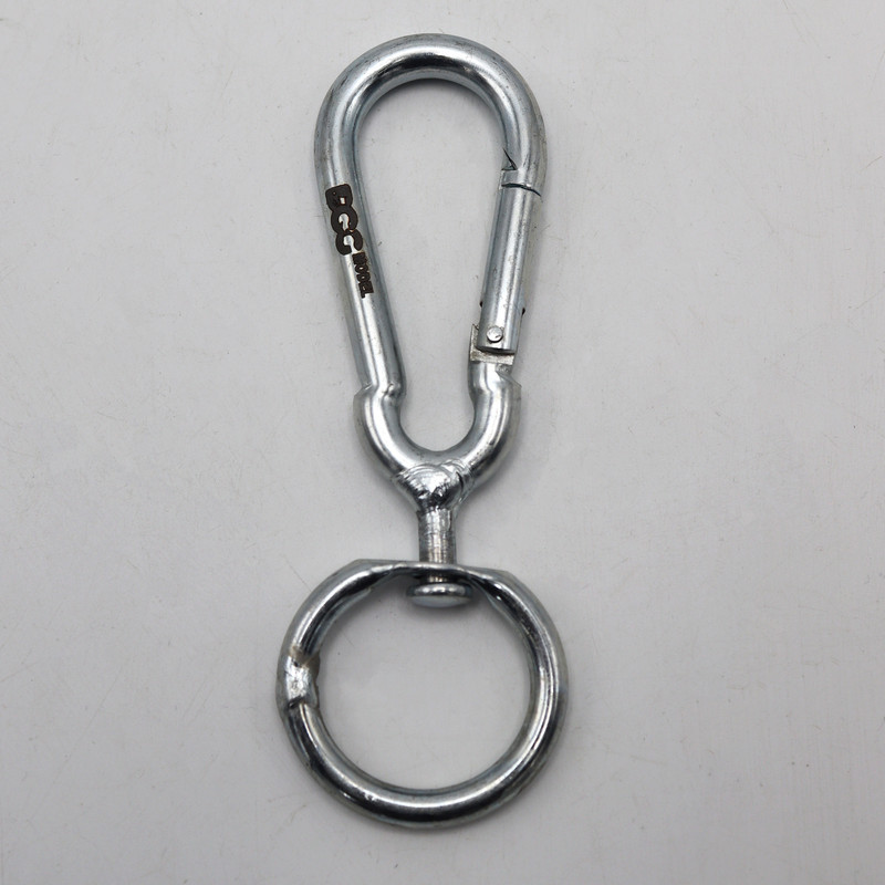 سایر توضیحات- کارابین گردان سایز 8 مدل داگ - سايز : 8 ( طول با حلقه گردان زیرین 13 سانتیمتر ) - سايز دهانه باز : 25 ميلي متر ( حدود .2.5 سانتیمتر) - دارای حلقه فلزی گردان در زیر کارابین - بيضي شكل