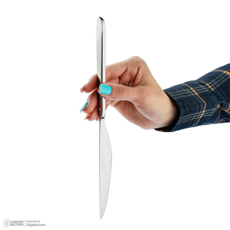 سایر توضیحات۶ عدد کارد سرو استیک به ابعاد ۲۴x۲x۱ سانتی‌متر و وزن ۸۰ گرم استیل۱۸/۱۰ضد زنگ با ضخامت۳/۵میلیمتر