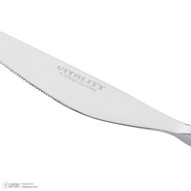 سایر توضیحات | 6 عدد کارد سرو استیک به ابعاد 24x2x1 سانتیمتر و وزن 80 گرم استیل18/10ضد زنگ با ضخامت3/5میلیمتر |