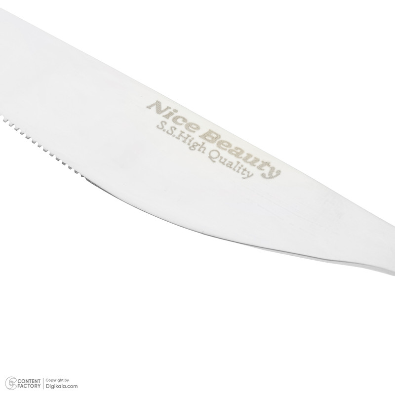 کارد استیک " نایس بیوتی " کارد بسیار خوش دستی هست ، تیغه اره ای تیز و کشیده ای برای برش گوشت داره ، دسته ضخامت خوبی داره و تو دست راحته