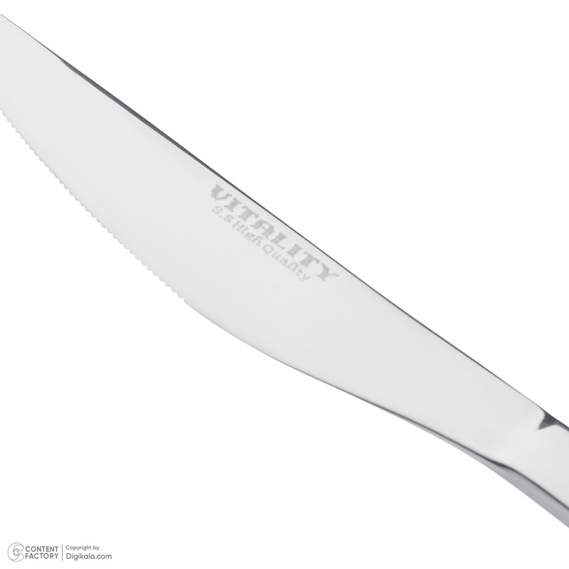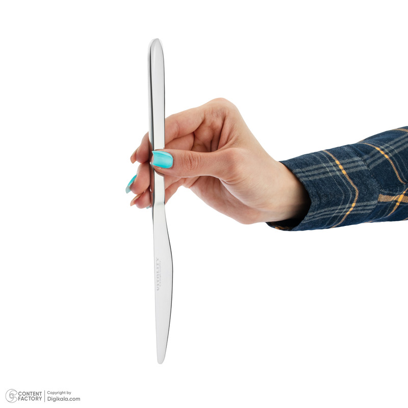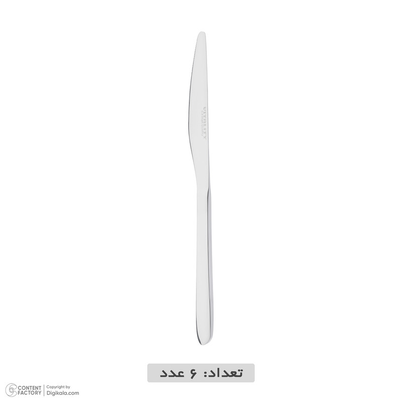 سایر توضیحات | ۶ عدد کارد غذاخوری به ابعاد 23x2.5x0.5 سانتیمتر و وزن ۸۰ گرم استیل18/10ضد زنگ با ضخامت3/5میلیمتر |