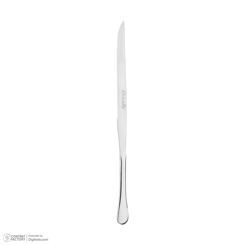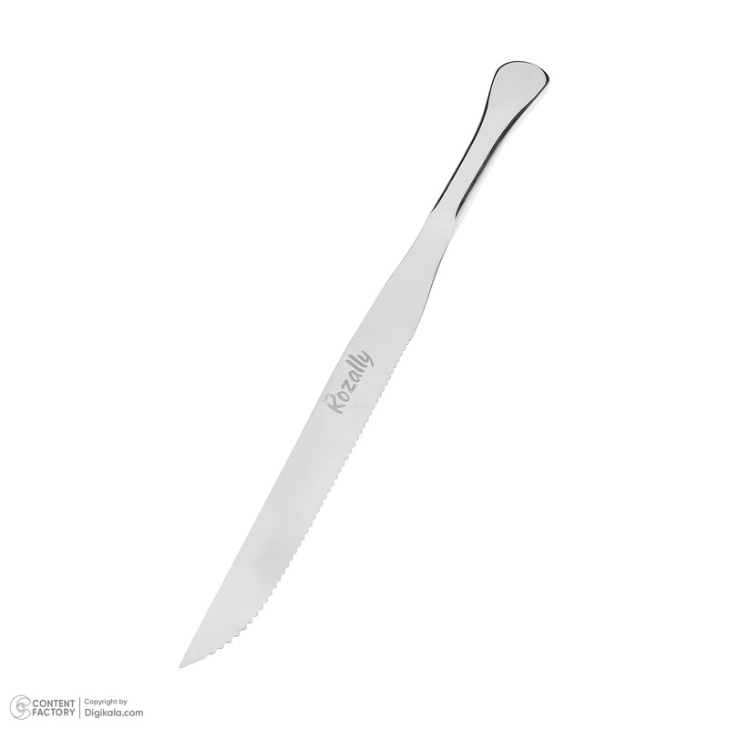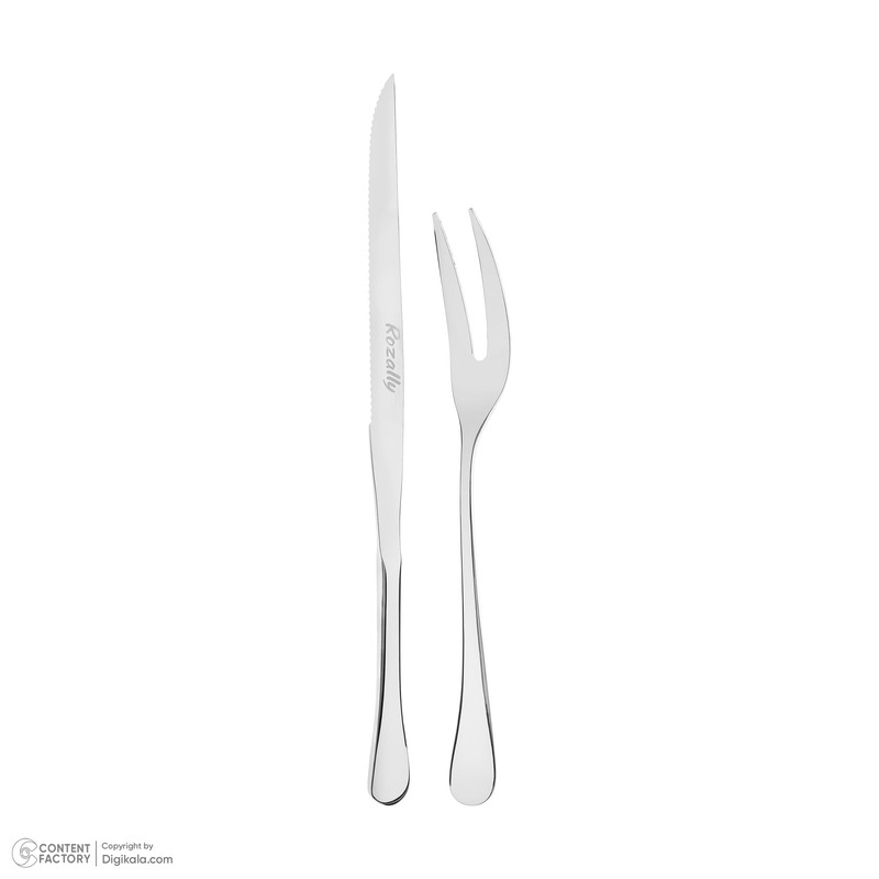 کارد و چنگال سرو " رزالی " ابزار بسیارمناسبی برای سرو گوشت و بره و مرغ و بوقلمون بریانی میباشد و کارد آن با دنده های تیزی که دارد به راحتی برای شما برش ایجاد میکند و میتوانید پذیرایی لذت بخشی برای مهمانان عزیز خود داشته باشید.ضمنا جنس این محصول از استیل براق 18/10ضد زنگ با ضخامت3/5میلی متر بوده و قابل شستشو با ماشین ظرفشویی میباشد.