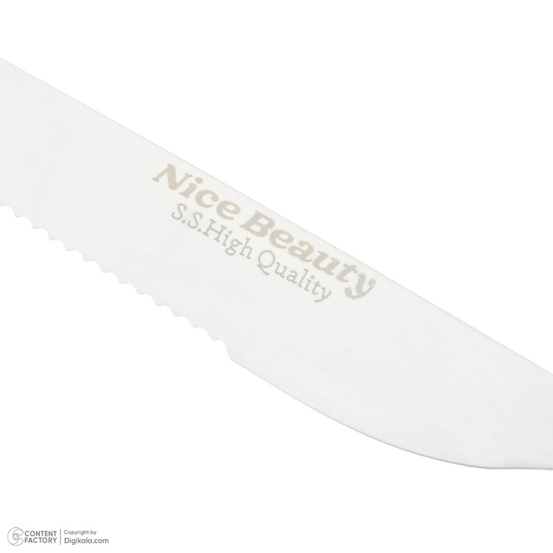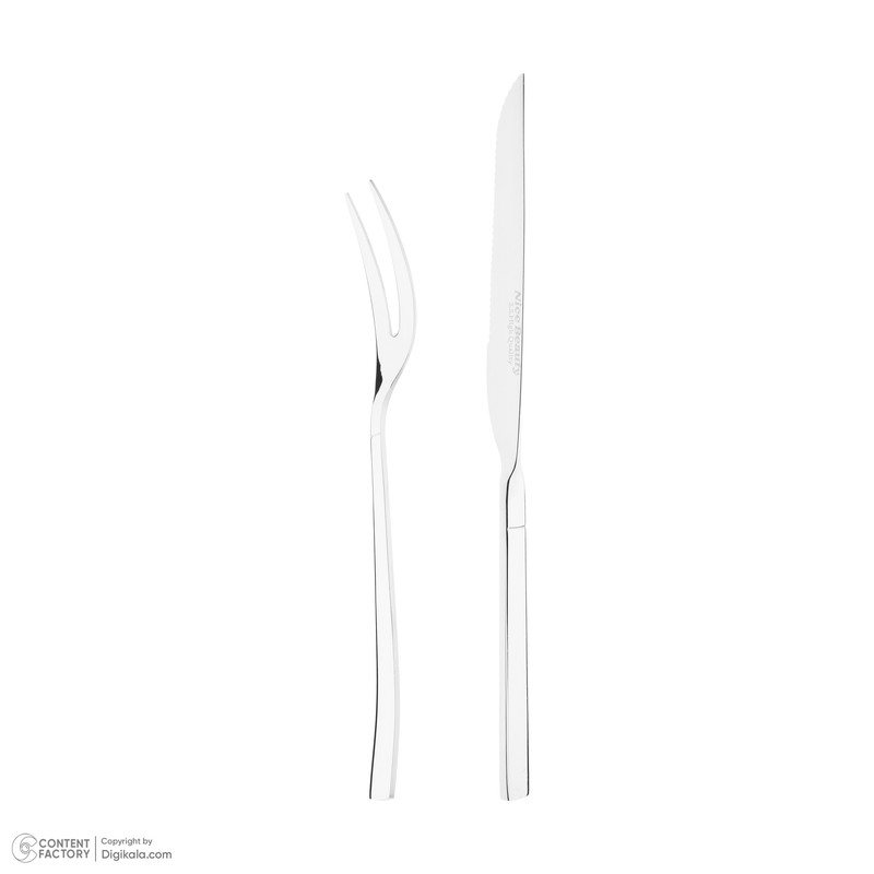 | سایر توضیحات | 1 عدد کارد سرو به ابعاد 29x1.5x2 سانتی متر و وزن 110 گرم - 1 عدد چنگال سرو به ابعاد 25x3x0.35 سانتی متر و وزن 65 گرم استیل 18/10 ضد زنگ - ضخامت 3.5 میلی متر - |