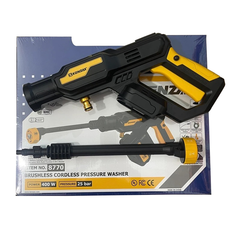 کارواش شارژی کنزاکس مدل 8770 با ولتاژ 20 ولت و باتری لیتیومی 3 آمپر ساعت انرژی خود را تأمین میکند. وجود دو عدد باتری و پایه شارژر در بستهبندی، این امکان را فراهم میسازد که بدون وقفه و در زمانهای طولانیتری از دستگاه استفاده کنید.