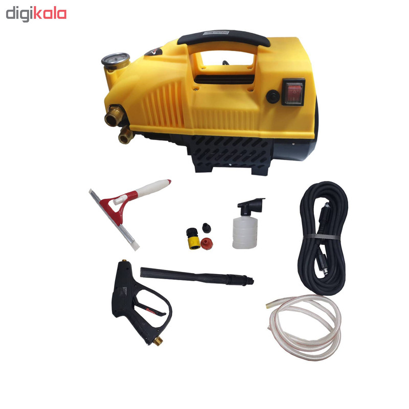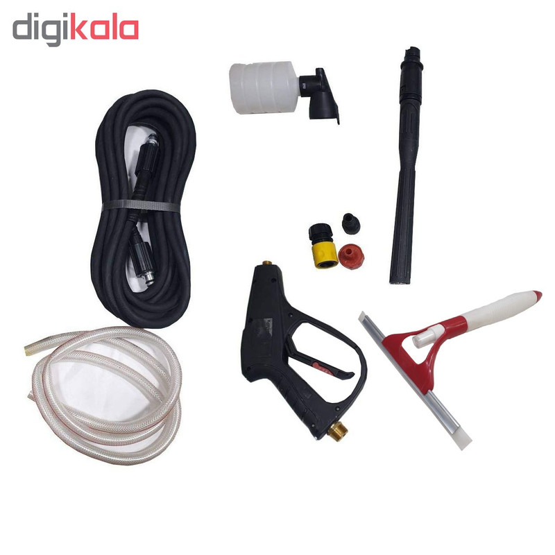 اقلام همراه | - محفظه مواد شوینده - صافی و رابط اتصال - تفنگی - لنس قابل تنظیم - 5متر شیلنگ فشار قوی |