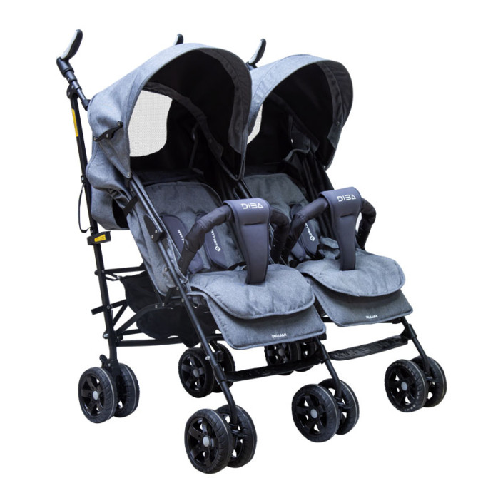 کالسکه دو قلوی دسته عصایی دلیجان مدل دیبا از جمع و جور ترین کالسکه های عصایی ساخت ایران می باشد.وزن نسبتا سبک و جمع شدن طولی و سایبان قابل جدا شدن از مزیت های این کالسکه می باشد.هر طرف این کالسکه تحمل وزن تا 18 کیلو سر جمع 36 کیلو را دارا می باشد.چرخ های جلوی این کالسکه قابلیت چرخش سیصدو شصت در جه را دارد.این کالسکه برای ایمنی هر چه بیشتر کودک دارای کمربند 5 نقطه ای دارد.دسته های این کالسکه قابلیت چرخش در چهار قسمت مختلف را دارد.سایبان های این کالسکه می توانید مجزا برای هر کودک استفاده کنید. این کالسکه به دلیل حجم کم بعد از جمع شدن در رده کالسکه های سبک عصایی قرار می گیرد.