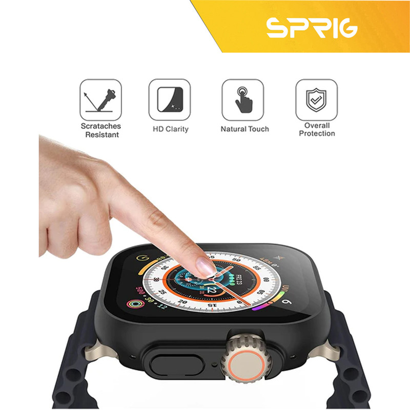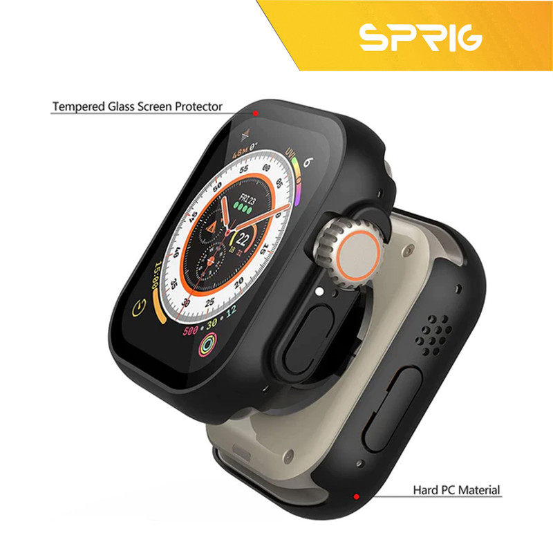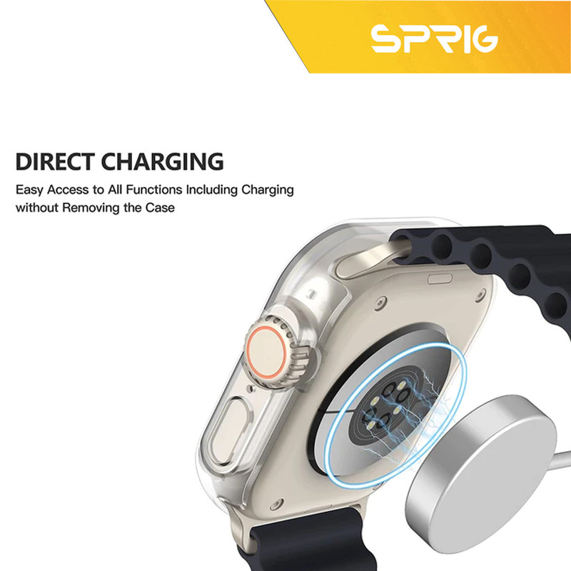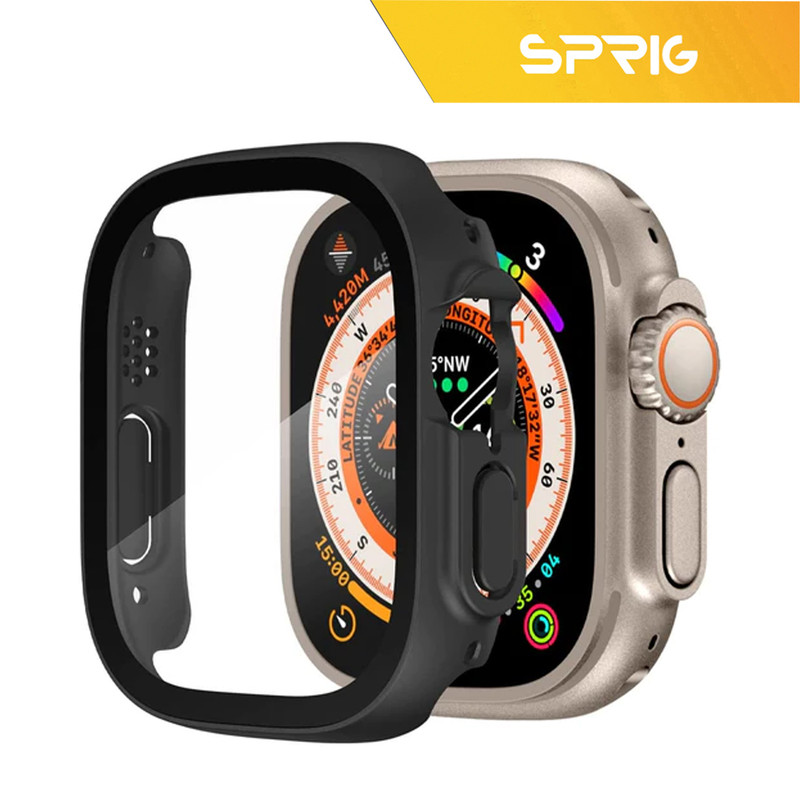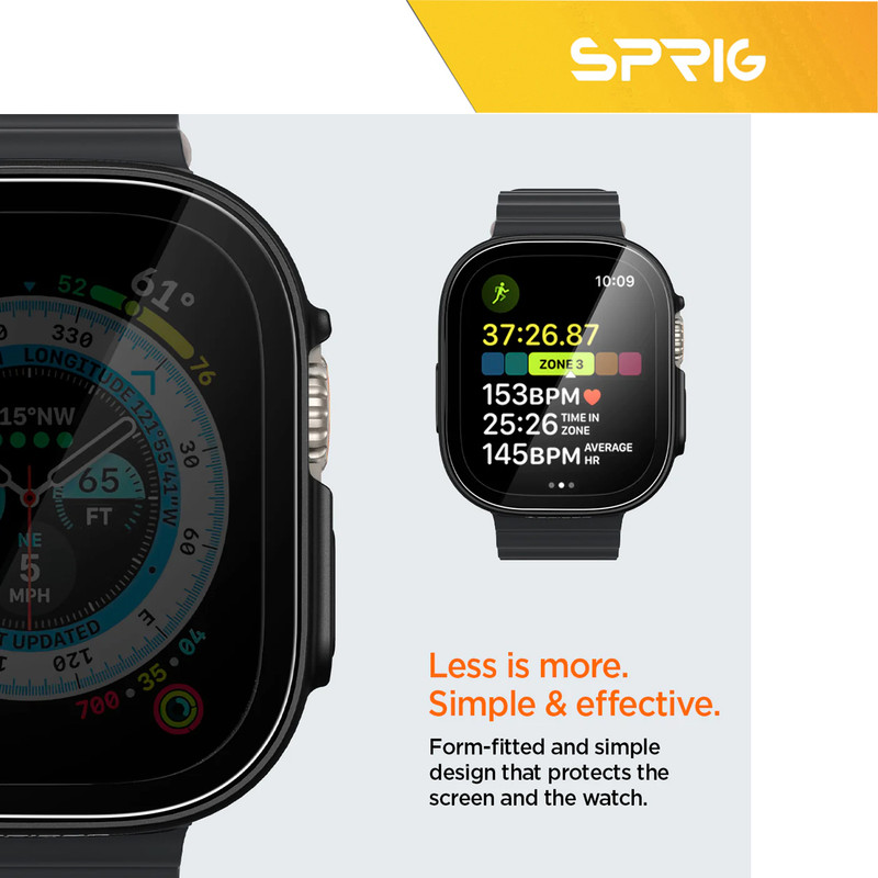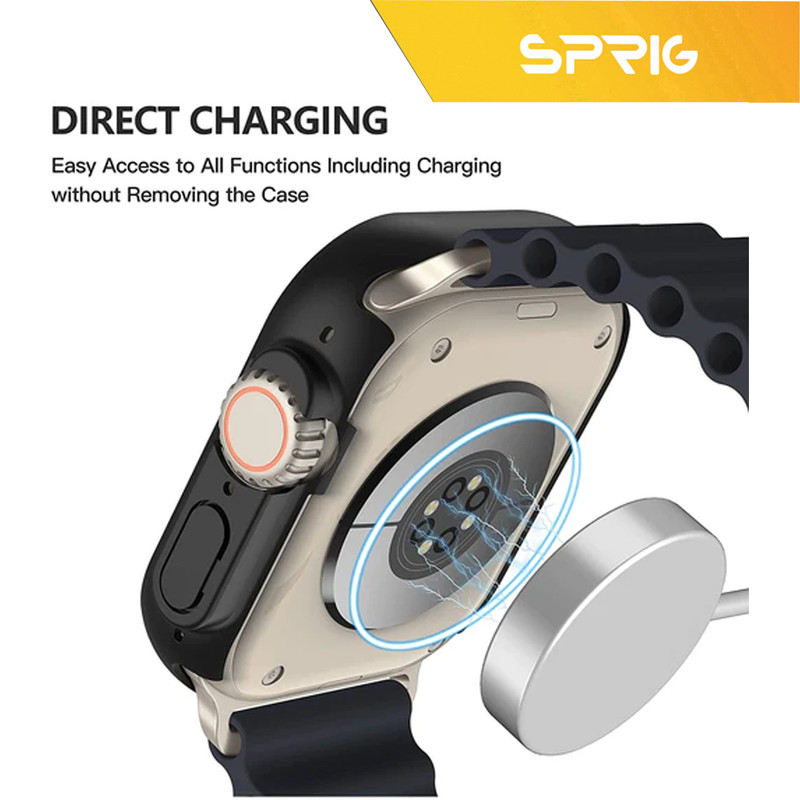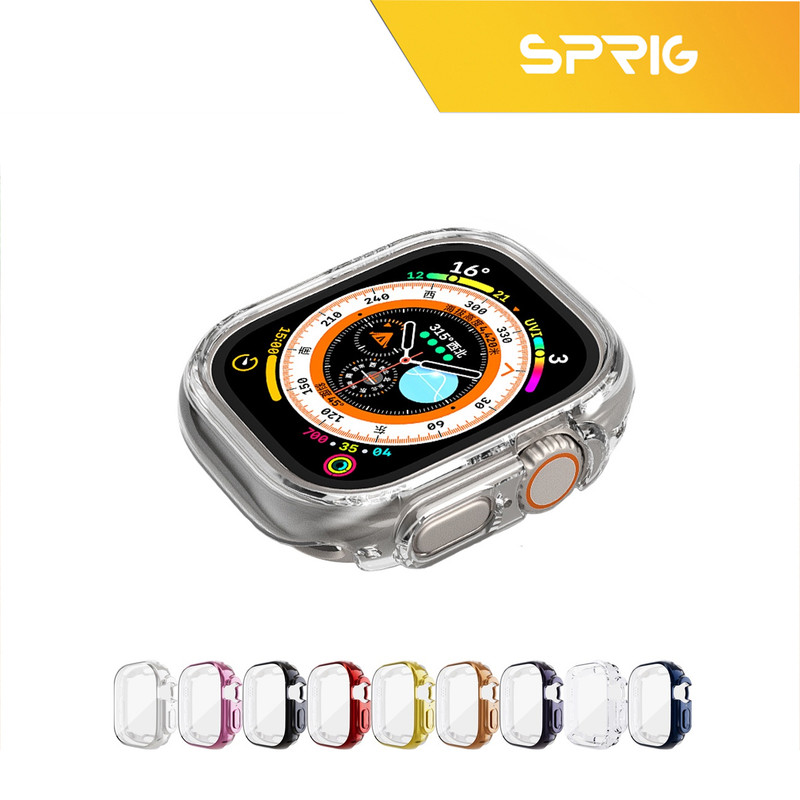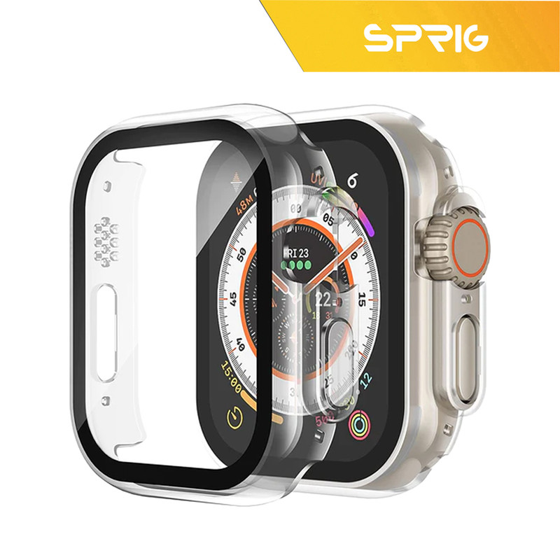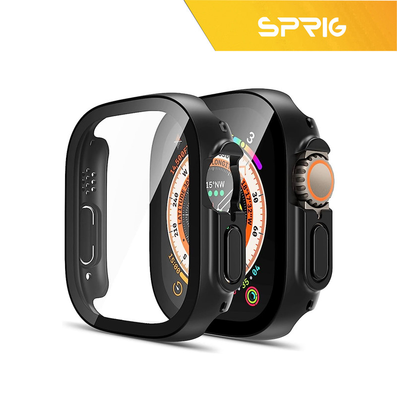 کاور اسپریگ مدل 360 Guard ، بدنهای از جنس پلیکربنات دارد. این متریال نسبت به TPU سختتر بوده و با اینکه نسبت به آن انعطافپذیری کمتری دارد ولی محافظ قویتر و مستحکمتری محسوب میشود. هرچند سخت بودن این کاور اختلالی در نصب آن ایجاد نمیکند و با کمی دقت میتوان به آسانی آن را روی ساعت نصب نمود. برشکاری دقیق کاور محافظ Apple Watch 49mm در قسمت دکمهها و پورتها سبب شده تا در دسترسی به آنها محدودیتی ایجاد نشود. علاوه بر این ضخامت کم این محصول اپل واچ شما را بیش از حد برجسته نمیکند و کاملا با ابعاد ساعت هماهنگ است.گلس حرارتدیده متصل به این کاور نیز با بهرهگیری از یک طراحی هوشمندانه به خوبی فشار لمس را به صفحه نمایش ساعت انتقال میدهد و تا حد ممکن اختلالی در عملکرد تاچ ایجاد نمیکند.
