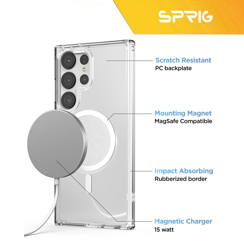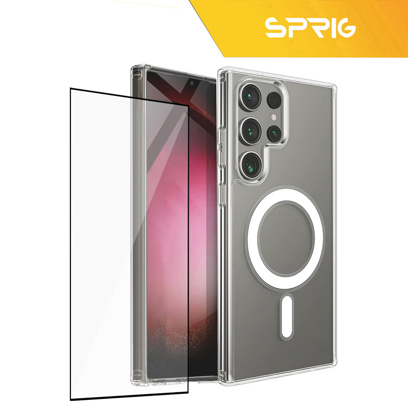 کاور اسپریگ مدل CLR Magsafe مناسب برای گوشی موبایل سامسونگ Galaxy S25 Ultra به همراه محافظ صفحه نمایش گوشی