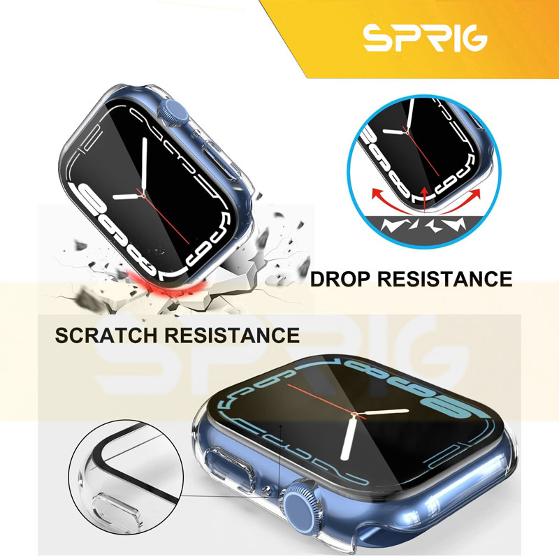 کاور اسپریگ مدل GUAR-DG ، بدنهای از جنس پلیکربنات دارد. این متریال نسبت به TPU سختتر بوده و با اینکه نسبت به آن انعطافپذیری کمتری دارد ولی محافظ قویتر و مستحکمتری محسوب میشود. هرچند سخت بودن این کاور اختلالی در نصب آن ایجاد نمیکند و با کمی دقت میتوان به آسانی آن را روی ساعت نصب نمود. برشکاری دقیق کاور در قسمت دکمهها و پورتها سبب شده تا در دسترسی به آنها محدودیتی ایجاد نشود. علاوه بر این ضخامت کم این محصول اپل واچ شما را بیش از حد برجسته نمیکند و کاملا با ابعاد ساعت هماهنگ است.گلس حرارتدیده متصل به این کاور نیز با بهرهگیری از یک طراحی هوشمندانه به خوبی فشار لمس را به صفحه نمایش ساعت انتقال میدهد و تا حد ممکن اختلالی در عملکرد تاچ ایجاد نمیکند.