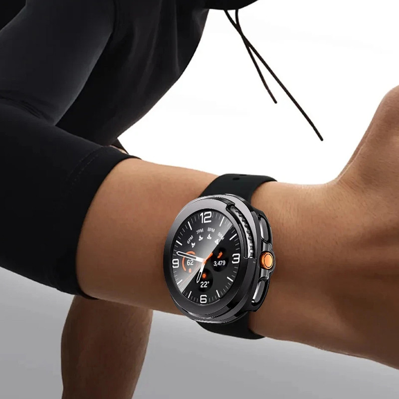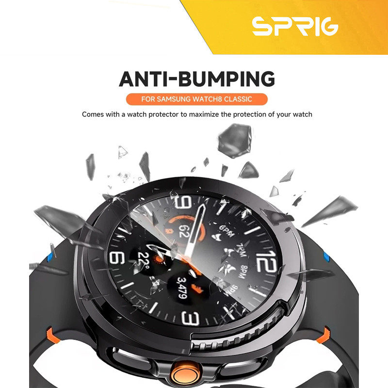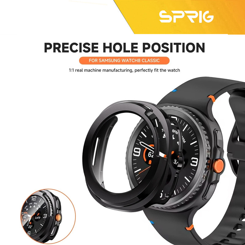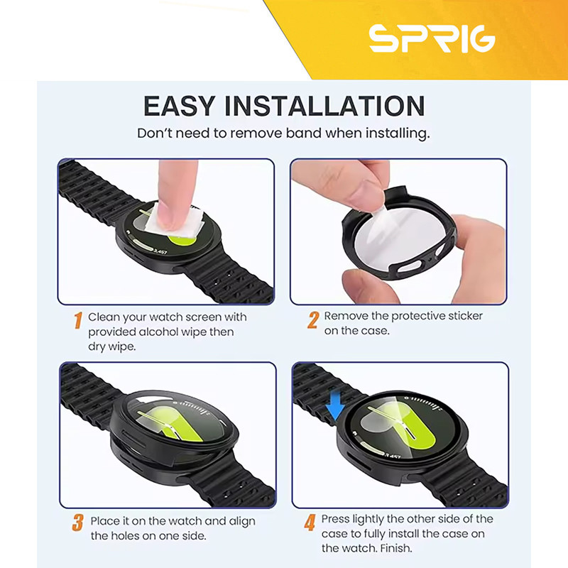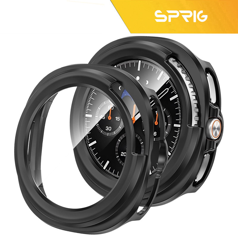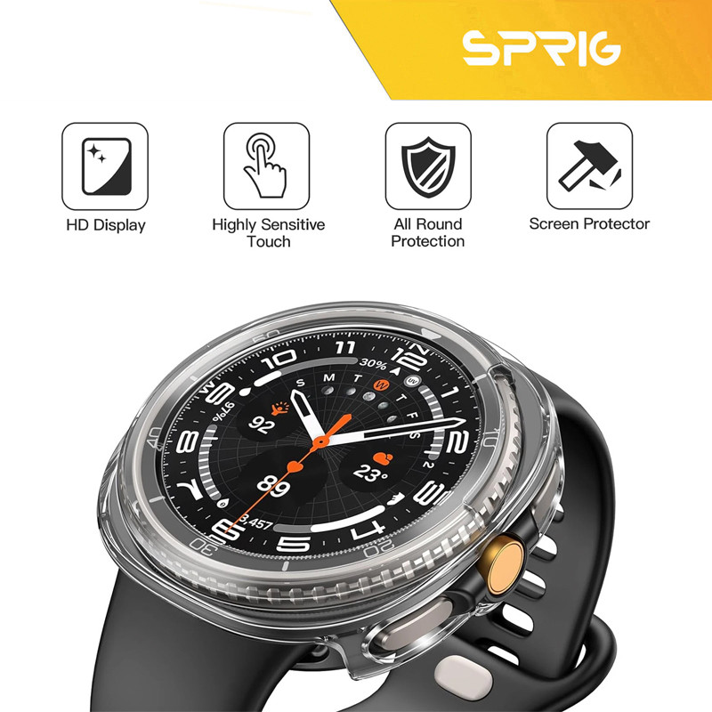 کاور اسپریگ مدل Hard Guard PC ، بدنهای از جنس پلیکربنات دارد. این متریال نسبت به TPU سختتر بوده و با اینکه نسبت به آن انعطافپذیری کمتری دارد ولی محافظ قویتر و مستحکمتری محسوب میشود. هرچند سخت بودن این کاور اختلالی در نصب آن ایجاد نمیکند و با کمی دقت میتوان به آسانی آن را روی ساعت نصب نمود. برشکاری دقیق کاور در قسمت دکمهها و پورتها سبب شده تا در دسترسی به آنها محدودیتی ایجاد نشود. علاوه بر این ضخامت کم این محصول واچ شما را بیش از حد برجسته نمیکند و کاملا با ابعاد ساعت هماهنگ است.گلس حرارتدیده متصل به این کاور نیز با بهرهگیری از یک طراحی هوشمندانه به خوبی فشار لمس را به صفحه نمایش ساعت انتقال میدهد و تا حد ممکن اختلالی در عملکرد تاچ ایجاد نمیکند.