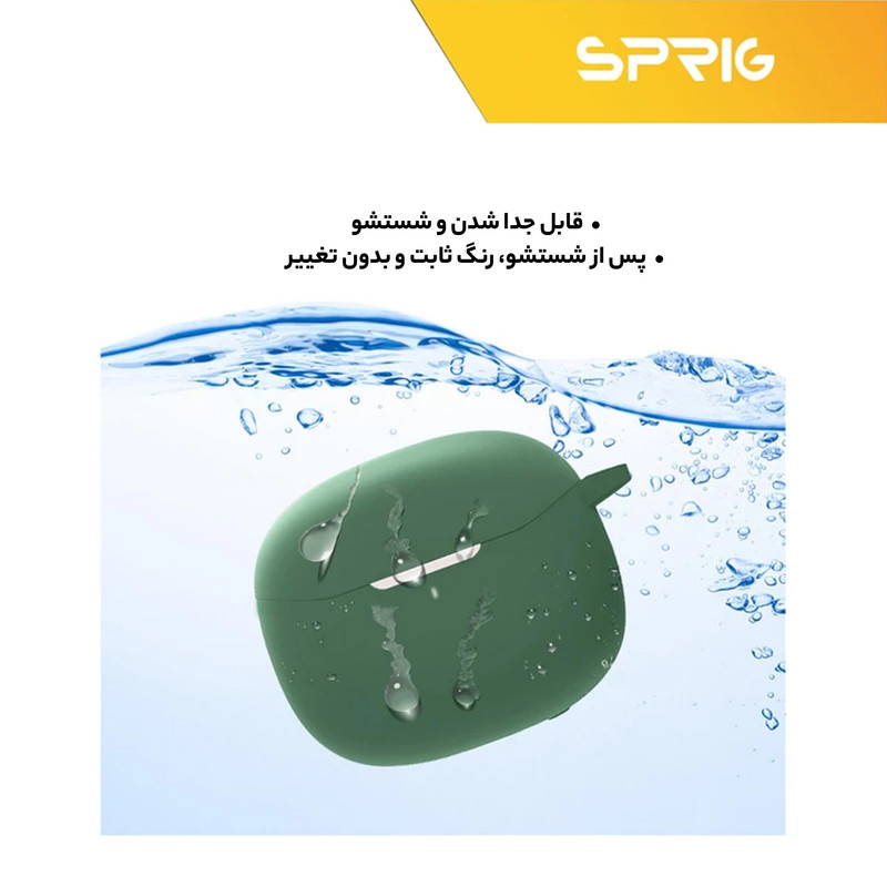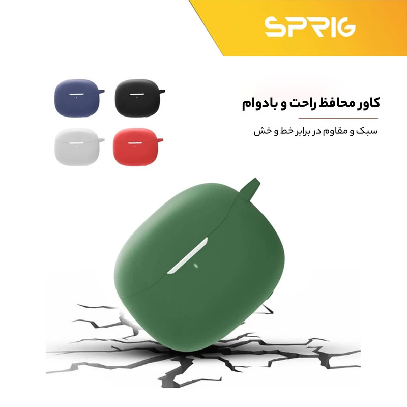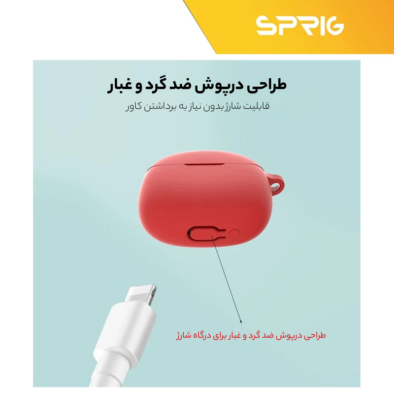 یکی از پر کاربرد ترین لوازم جانبی ایرپاد، کاور محافظ کیس شارژ ایرپاد است که با برند اسپریگ به بازار عرضه شده و در رنگ های متنوع به فروش می رسد و شما به سادگی می توانید با قاب گوشی موبایل خود ست نمائید. جنس این کاور بسیار نرم همراه با انعطاف پذیری بالا است که می تواند از محفظه شارژ ایرپاد شما در برابر ضربه و خط و خش محافظت نماید. این کاور کیس شارژ هندزفری به دلیل وزن سبکی که دارد به راحتی قابل حمل بوده و به هیچ وجه باعـث سنگینی کیس ایرپاد شما نمی‌ شود. با استفاده از این کاور محافظ به سادگی می توانید به درگاه شارژ کیس ایرپاد دسترسی داشته و اپرپاد خود را شارژ نمائید. پوشش دهی این محصول به گونه ای است که به صورت کامل کیس شارژ ایرپاد شما را در بر می گیرد و از بدنه کیس شارژ شما در برابر خراشیدگی محافظت می کند.