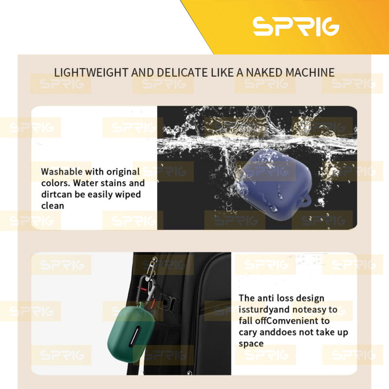 یکی از پر کاربرد ترین لوازم جانبی ایرپاد، کاور محافظ کیس شارژ ایرپاد است که با برند اسپریگ به بازار عرضه شده و در رنگ های متنوع به فروش می رسد و شما به سادگی می توانید با قاب گوشی موبایل خود ست نمائید. جنس این کاور بسیار نرم همراه با انعطاف پذیری بالا است که می تواند از محفظه شارژ ایرپاد شما در برابر ضربه و خط و خش محافظت نماید. این کاور کیس شارژ هندزفری به دلیل وزن سبکی که دارد به راحتی قابل حمل بوده و به هیچ وجه باعـث سنگینی کیس ایرپاد شما نمی شود. با استفاده از این کاور محافظ به سادگی می توانید به درگاه شارژ کیس ایرپاد دسترسی داشته و اپرپاد خود را شارژ نمائید. پوشش دهی این محصول به گونه ای است که به صورت کامل کیس شارژ ایرپاد شما را در بر می گیرد و از بدنه کیس شارژ شما در برابر خراشیدگی محافظت می کند.