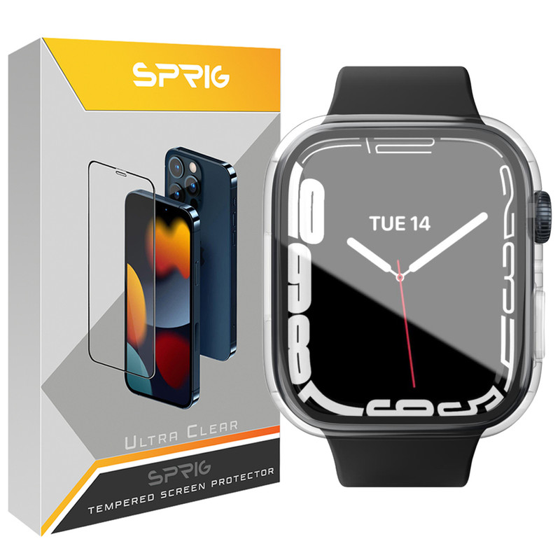 کاور اسپریگ مدل SP-Cl ، بدنهای از جنس پلیکربنات دارد. این متریال نسبت به TPU سختتر بوده و با اینکه نسبت به آن انعطافپذیری کمتری دارد ولی محافظ قویتر و مستحکمتری محسوب میشود. هرچند سخت بودن این کاور اختلالی در نصب آن ایجاد نمیکند و با کمی دقت میتوان به آسانی آن را روی ساعت نصب نمود. برشکاری دقیق کاور در قسمت دکمهها و پورتها سبب شده تا در دسترسی به آنها محدودیتی ایجاد نشود. علاوه بر این ضخامت کم این محصول اپل واچ شما را بیش از حد برجسته نمیکند و کاملا با ابعاد ساعت هماهنگ است.گلس حرارتدیده متصل به این کاور نیز با بهرهگیری از یک طراحی هوشمندانه به خوبی فشار لمس را به صفحه نمایش ساعت انتقال میدهد و تا حد ممکن اختلالی در عملکرد تاچ ایجاد نمیکند.