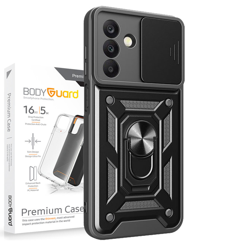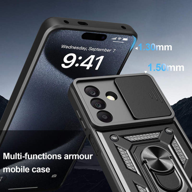 قاب بادیگارد مدل Batman برای گوشی موبایل A17 ترکیبی از طراحی مقاوم و کاربردی است که با استفاده از متریال‌های با کیفیت مانند TPU نرم و PC سخت، لایه‌های چندگانه‌ای از محافظت را برای گوشی شما فراهم می‌کند. این قاب علاوه بر پوشش کامل بدنه و لبه‌ها، به دلیل داشتن حلقه‌ی فلزی چندمنظوره با قابلیت چرخش ۳۶۰ درجه، امکان استفاده به عنوان استند برای تماشای ویدیو و تماس تصویری را فراهم می‌سازد و در عین حال با پایه‌های آهنربایی خودرو نیز سازگار است و به راحتی به هولدر مغناطیسی متصل می‌شود. طراحی ضدلغزش آن باعث می‌شود گوشی به‌خوبی در دست قرار گیرد و از افتادن ناگهانی جلوگیری کند، ضمن اینکه اسلاید پوش دوربین از لنزها در برابر خط و خش محافظت می‌کند. قاب Batman بادیگارد نه تنها امنیت و مقاومت بالایی در برابر ضربه و فشار فراهم می‌کند، بلکه ظاهر مدرن و حرفه‌ای آن جلوه‌ای خاص به گوشی A17 شما می‌دهد و گزینه‌ای ایده‌آل برای کسانی است که به دوام، کارایی و استایل در کنار هم اهمیت می‌دهند.