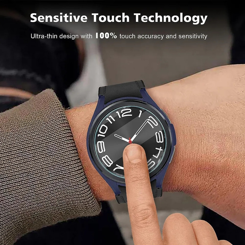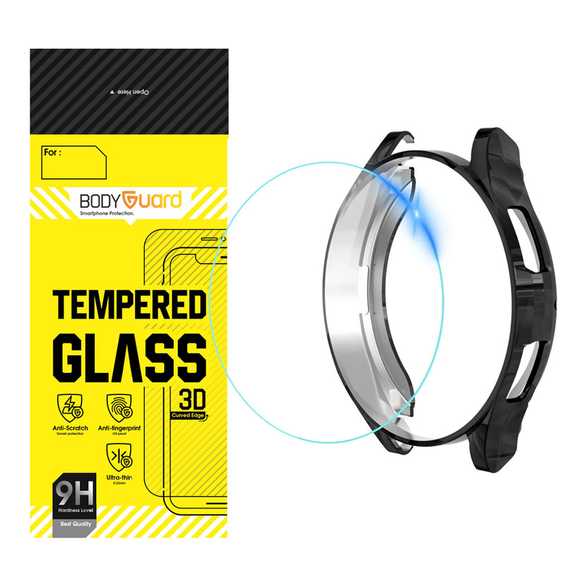 کاور بادیگارد مخصوص ساعت هوشمند Samsung Galaxy Watch 6 43mm . این کاور علاوه بر حفاظت کامل از بدنه ساعت به علت دارا بودن گلس شیشه ای از صفحه نمایش هم به طور کامل محافظت می کند.
