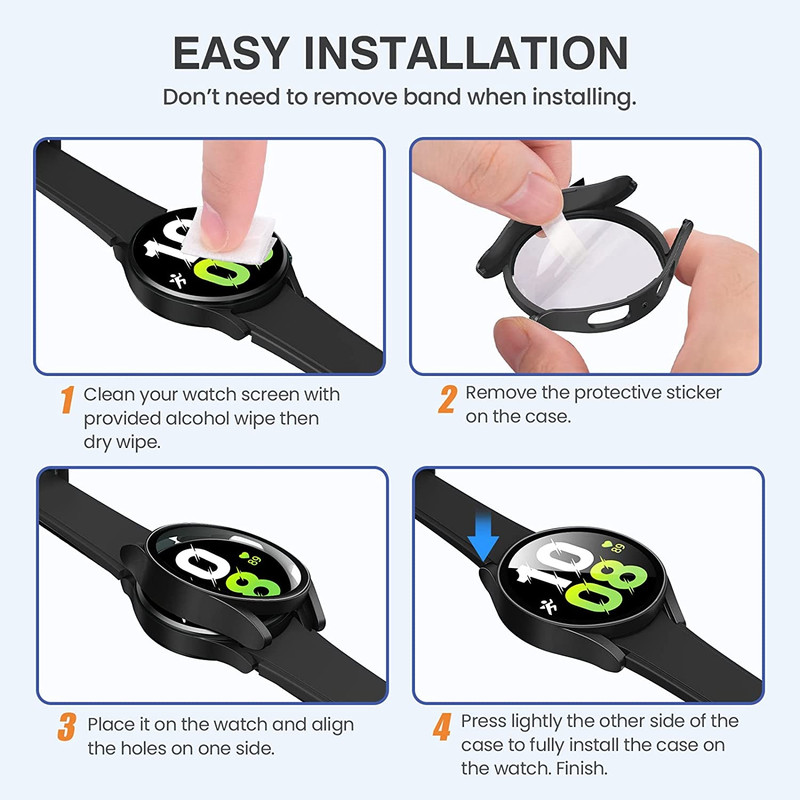 کاور بادیگارد مخصوص ساعت هوشمند Samsung Galaxy Watch5 40 mm R900-R905. این کارو علاوه بر حفاظت کامل از بدنه ساعت به علت دارا بودن گلس شیشه ای از صفحه نمایش هم به طور کامل محافظت می کند.