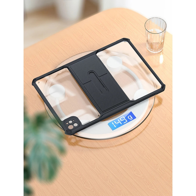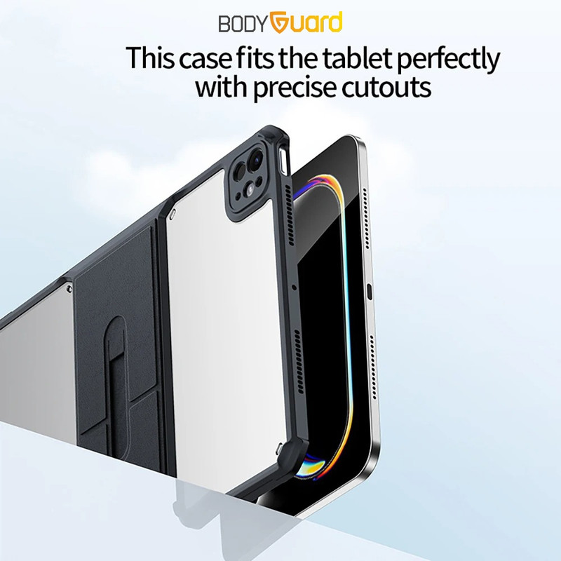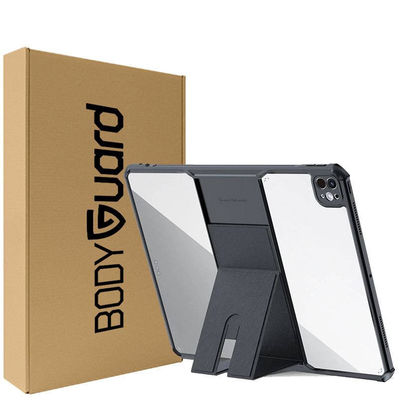 قاب بادیگارد مدل KickStand با بهره گیری از جدیدترین طراحی روز علاوه بر زیبایی امکان محافظت کامل از تبلت را نیز فراهم می کند. این کاور دارای کناره محکم و گوشه های کپسولی جهت حفاظت از تبلت در برابر صدمات می باشد. پشت این کاور طلق محکم شفاف می باشد که باعث حفظ زیبایی تبلت می شود. کاور KickStand دارای قسمت استند در پشت می باشد که باعث می شود تبلت در 3 حالت تماشای فیلم، حالت تایپ و حالت دستگیره ای جهت قرار گرفتن در کف قرار گیرد.
