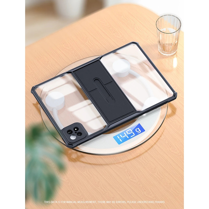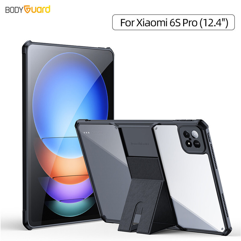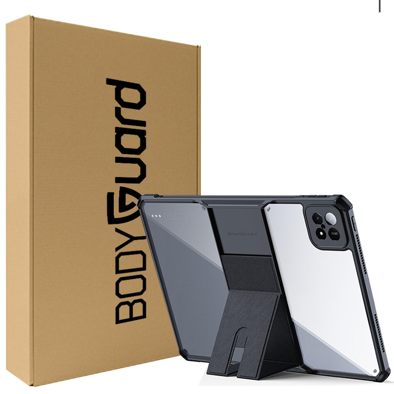 قاب بادیگارد مدل KickStand با بهره گیری از جدیدترین طراحی روز علاوه بر زیبایی امکان محافظت کامل از تبلت را نیز فراهم می کند. این کاور دارای کناره محکم و گوشه های کپسولی جهت حفاظت از تبلت در برابر صدمات می باشد. پشت این کاور طلق محکم شفاف می باشد که باعث حفظ زیبایی تبلت می شود. کاور KickStand دارای قسمت استند در پشت می باشد که باعث می شود تبلت در 3 حالت تماشای فیلم، حالت تایپ و حالت دستگیره ای جهت قرار گرفتن در کف قرار گیرد.