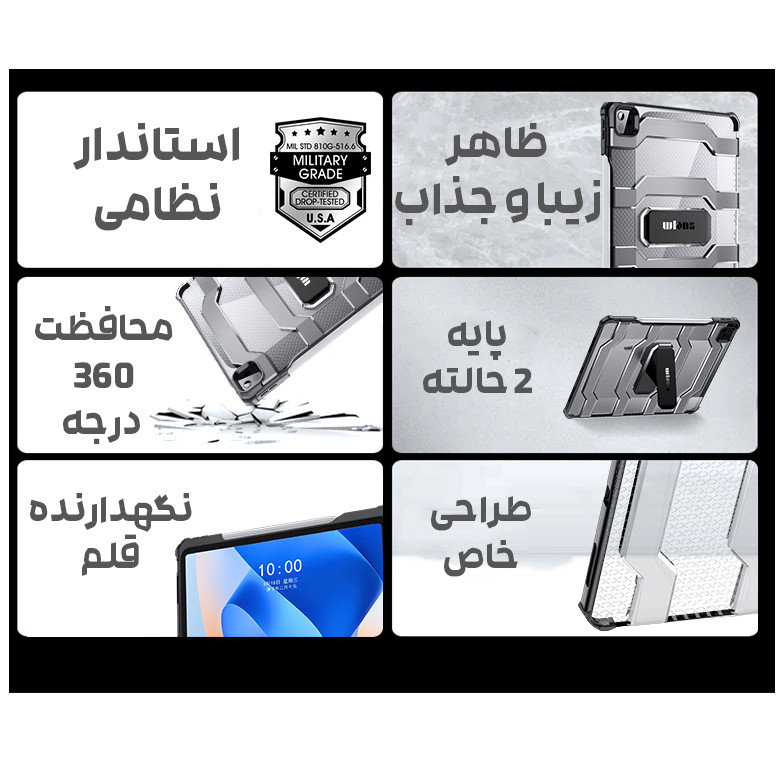 | ویژگیهای کیف و کاور | قابلیت تبدیل شدن به استند , لبه های برجسته برای محافظت صفحه نمایش , لبه های برجسته برای محافظت دوربین |