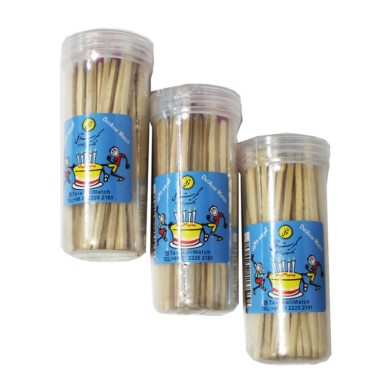 | سایر توضیحات | - بسته 3 عددی کبریت بلند دلاور توکلی. - دارای بسته بندی پلاستیکی ضد آب. - مناسب جهت کوه نوردی و سفر. - هر بسته شامل حدود 50 عدد چوب کبریت. - گوگرد رنگی با تنوع حدود 5 رنگ. - طول هر چوب کبریت 10 سانتی متر. |