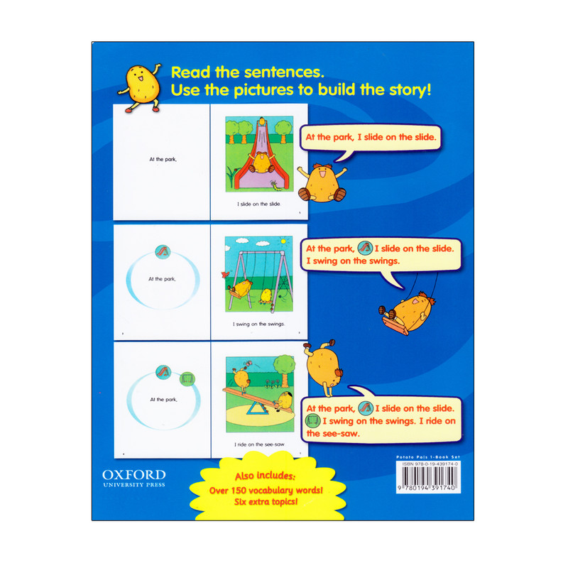 مجموعه داستان های دو سطحی Potato Pals با 5 داستان متنوع در هر پک (Potato Pals1, Potato Pals2) برای کودکان رده سنی 5 تا 7 مناسب می باشد و از طریق داستان به آموزش لغات و عبارات کاربردی می پردازد. از این مجموعه می توانید به راحتی در کنار هر مجموعه آموزشی استفاده کنید.