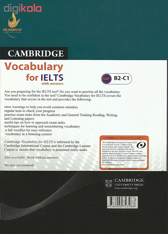 کتاب "Cambridge Vocabulary For IELTS" شامل واژگانی است که در آزمون آیلتس به کار می‌رود. این کتاب از طریق شنیدن و خواندن متن‌های مرتبط با آزمون آیلتس واژه‌های جدید و مهم را به مخاطبان می‌آموزد. یادگیری واژه در متن باعث می‌شود کلمه‌ها به سرعت وارد حافظه شوند. این کتاب با ارائه‌ی آزمون‌های منظم نیاز زبان‌آموزان این آزمون را برطرف می‌سازد و شامل تمرین‌هایی از تست‌های Reading و Writing و Listening آزمو...