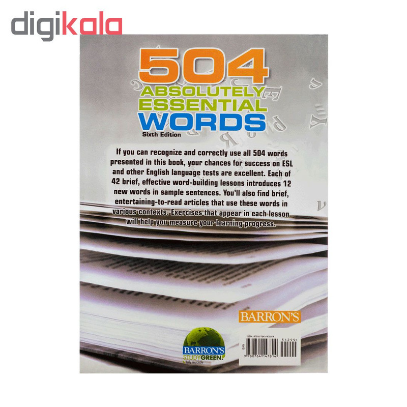 این کتاب شامل 504 وازه ضروری و رایج است که هر زبان آموزی باید بر آنها تسلط کافی داشته باشد. این کتاب روایت ساده و جذابی دارد و واژگان موردنظر را به زبان آموزان به شیوه جذاب اصولی می اموزد. این کتاب همچنین شامل نرم افزار برای تلفظ لغات و محتوای دروس می باشد. همین امر موجب می شود تا به تمامی لغات کتاب به اسانی دسترسی داشته باشید. همچنین، این کتاب یکی از منابع مهم کنکور زبان به شمار می رود.