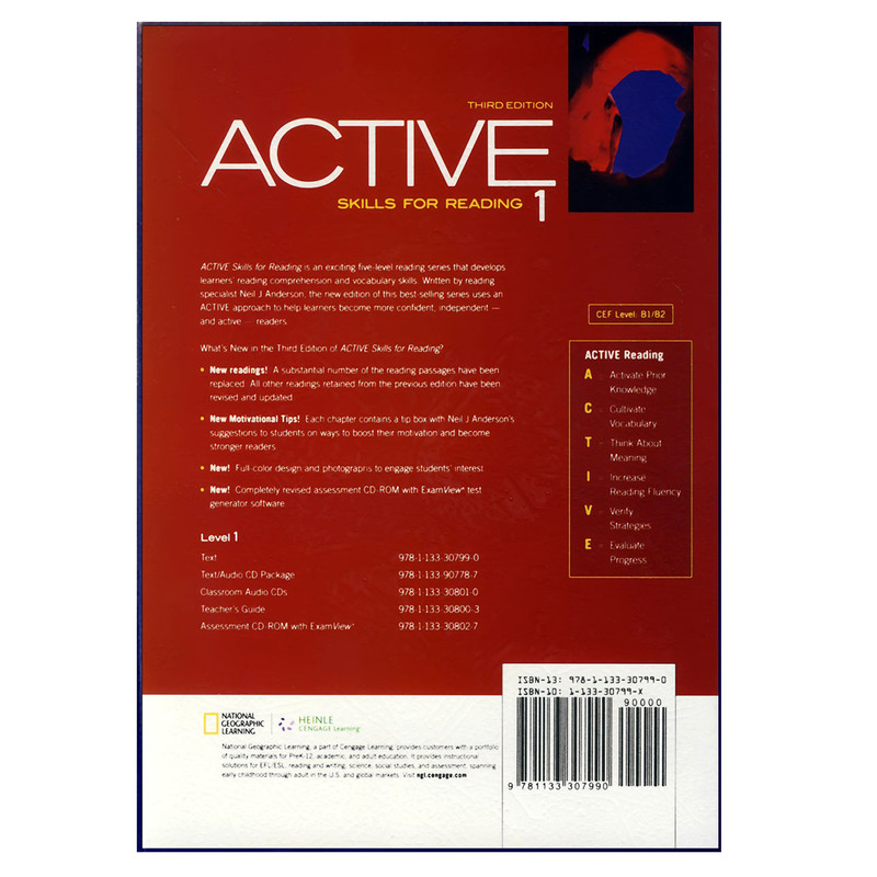 مجموعه Active Skills for Reading مطابق با سيستم آمريکايي، در 12 درس موضوعي براي تقويت مهارت reading و گسترش دايره واژگان در 5 سطح (Intro, 1, 2, 3, 4) ارائه ميشود. هر درس شامل Motivational Tips جهت افزايش انگيزه و تقويت مهارت خواندن و critical thinking به منظور تشويق زبانآموزان جهت آناليز متن ميباشد. مجموعه حاضر از روشي پويا و فعال (Active) براي تقويت مهارت reading بهره ميجويد. از ويژگي هاي بارز اين مجموعه فعال کردن و تقويت دانش زباني زبانآموز، پرداختن به مقوله واژگان، تفکر درباره معاني، تسلط بيشتر در مهارت، بهرهگيري از استراتژيهاي مختلف مانند predicting، scanning و skimming و ارزيابي ميزان پيشرفت زبانآموز ميباشد.