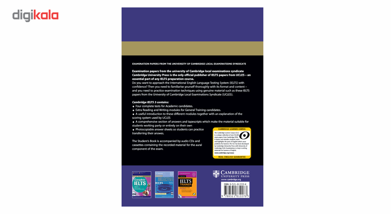 IELTS Cambridge مجموعه ای از نمونه آزمون های آزمایشی آیلتس است که هر ساله توسط انتشارات کمبریج منتشر می شود. این کتاب مرجع کاملی از سوالات آزمون آیلتس همراه با پاسخ های آن می باشد که شما با مطالعه آنها خود را برای شرکت در این آزمون آماده خواهید ساخت. همچنین همراه این کتاب، فایل های صوتی مرتبط با آن نیز با فرمت MP3 در اختیار زبان آموزان قرار گرفته است که مربوط به بخش Listening آزمون می شود. در پایان کتاب متن این Listening ها نیز Transcript شده است. شروع هر کتاب با معرفی آزمون آیلتس و نحوه نمره دهی و تفاوت آزمون آکادمیک و جنرال آغاز می شود و در انتهای کتاب پاسخ نامه تمام تست ها و نمونه های writing و متن کامل listening قرار دارد . وجود بخش پاسخ نامه در این کتاب، کتاب را برای مطالعه خودخوان و یا مطالعه آن در کلاس مناسب کرده است. ویژگی های اصلی: کتاب Cambridge IELTS با پاسخ تست ها همراه است و شامل 4 آزمون میشود. بخش Listening شامل 4 بخش، حدود 40 سوال که 30 دقیقه زمان میبرد. بخش Reading شامل 3 بخش، حدود 40 سوال که 60 ذقیقه زمان میبرد. بخش Writing شامل 2 تست که 60 دقیقه زمان میبرد. بخش Speaking شامل 10 تا 15 دقیقه زمان میبرد.
