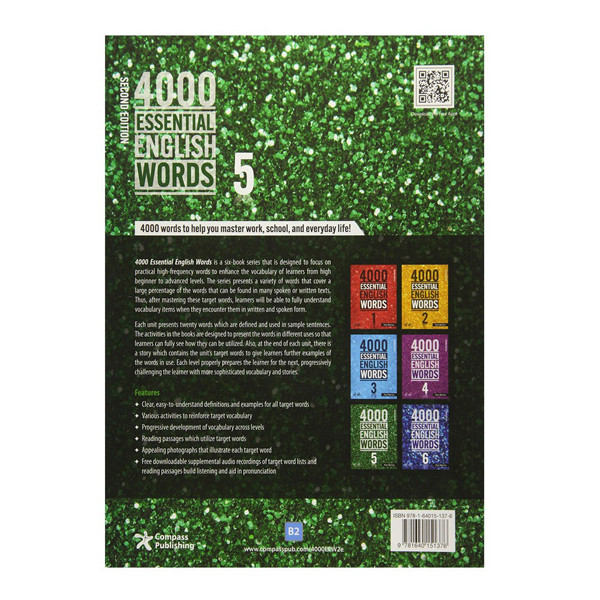 اگر به دنبال روشی خاص و مطمئن برای یادگیری و گسترش دایره لغات انگلیسی هستید و یا در حال آماده شدن برای شرکت در آزمون های مهمی همچون آیلتس یا تافل و... می باشید، بی شک به یک ابزار مناسب برای پیشبرد این اهداف نیاز خواهید داشت. کتابهای 4000 Essential English Words تمرکز آن بر روی آموزش لغات مهم و افزایش داریره لغات از سطح مبتدی تا پیشرفته ست. از جمله ویژگی های مهم این کتابها آموزش لغات همراه با مثال های بسیار قوی و مناسب می باشد. بنابراین، پس از تسلط بر کلمات هدف، فراگیران قادر به درک کامل واژگان خواهند بود که با آن ها در قالب نوشته و داستان آشنا خواهند شد. در هر بخش 20 کلمه ارائه می شود که هر کلمه دارای مثالی درج شده در جملات است. کتاب فوق شامل فعالیت هایی ست تا فراگیران بتوانند به خوبی مفهوم جملات را یاد بگیرند و به خاطر بسپارند. همچنین در پایان هر بخش، داستانی مرتبط با کلمات هدف در آن درس بیان شده تا دانش آموخته بتواند برای دروس بعدی کاملا آماده شود. ویژگی های اصلی این کتاب عبارتند از: تعاریف و مثال های واضح و قابل درک می‌باشد. دارای فعالیت های مختلف برای تقویت واژه های مورد هدف می‌باشد . توسعه یافتن سطح سختی کلمات، همزمان با پیش روی دروس انجام می‌گیرد. داستان های واقعی که کلمات هر درس را در بر می گیرند. دارای تصاویر جذاب برای یادگیری بهتر کلمات هدف می‌باشد. دارا بودن فایل های صوتی که در آن، داستان ها، کلمات هدف و تلفظ لغات ارائه شده است.