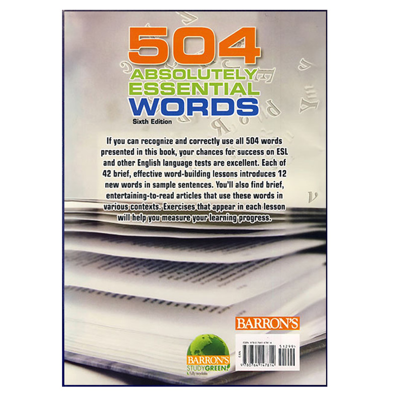 این کتاب شامل 504 واژه ضروری و رایج است که هر زبان‌آموزی باید بر آنها تسلط کافی داشته باشد. این کتاب روایت ساده و جذابی دارد و واژگان مورد نظر را به زبان‌آموزان به شیوه جذاب اصولی می‌آموزد. این کتاب همچنین شامل نرم‌افزار برای تلفظ لغات و محتوای دروس می‌باشد. همین امر موجب می‌شود تا به تمامی لغات کتاب به آسانی دسترسی داشته باشید. همچنین، این کتاب یکی از منابع مهم کنکور زبان به شمار می‌رود.