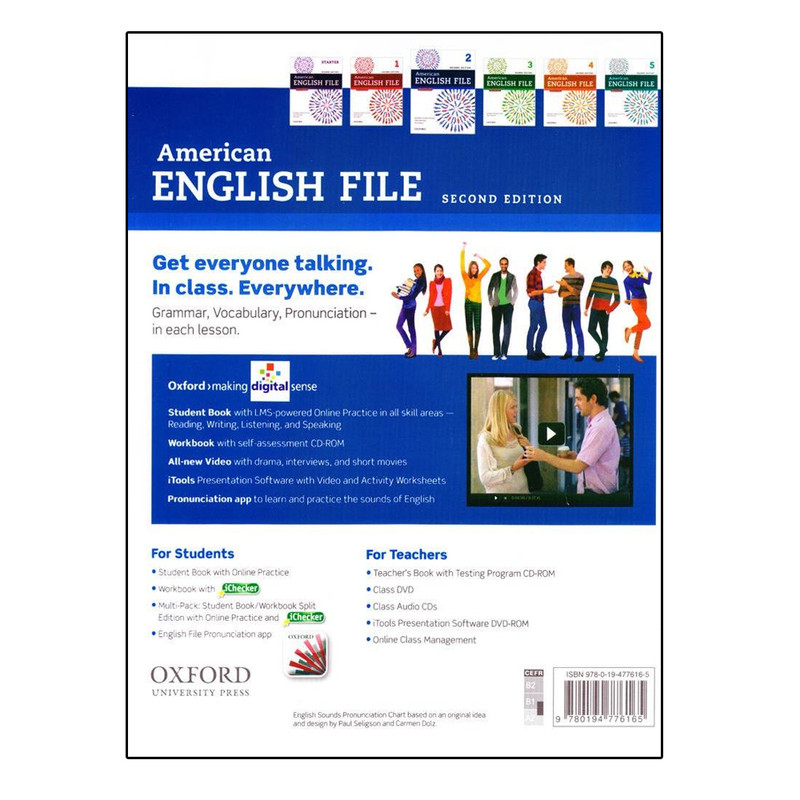 برای اینکه بتوانید بر یک زبان مسلط شوید و به راحتی آن را صحبت کنید، باید برتمام مهارت های چهارگانه و به خصوص گفتار مسلط شوید تا بتوانید در تعاملات خود به طور موثری شرکت پذیر باشید.کتاب American English File یک دوره شش سطحی آموزش زبان انگلیسی برای بزرگسالان است که توانسته موفقیت های بسیاری را کسب کند. این کتاب در بسیاری از آموزشگاه های نه تنها ایران بلکه سرتاسر جهان تدریس می شود، زیرا همانطور که بر همگان روشن است، مکالمه و گفتار یکی از مهم ترین جنبه های یادگیری زبان است، و این مجموعه نیز به تقویت گفتار و مکالمه براساس لهجه آمریکایی می پردازد. کتابهای این مجموعه در بسیاری از موسسات آموزش زبان و توسط اساتید بسیاری تدریس میشود. در هر درس به بررسی یک موضوع خاص پرداخته است. درس ها از بخشهای مختلفی تشکیل شده و با ارائه متن و تمرینهای متنوع سعی در آموزش مهارت های اصلی و واژگان زبان انگلیسی به شیوهای جذاب را دارد. دانشجویان در دوره های آموزش زبان و همه کسانی که به طور حرفه ای در توسعه و استفاده از آزمون های زبان تحصیل می کنند، این منبع را یکی از متون معتبر و جامع در راستای مقاصد و اهداف خود تلقی می کنند.