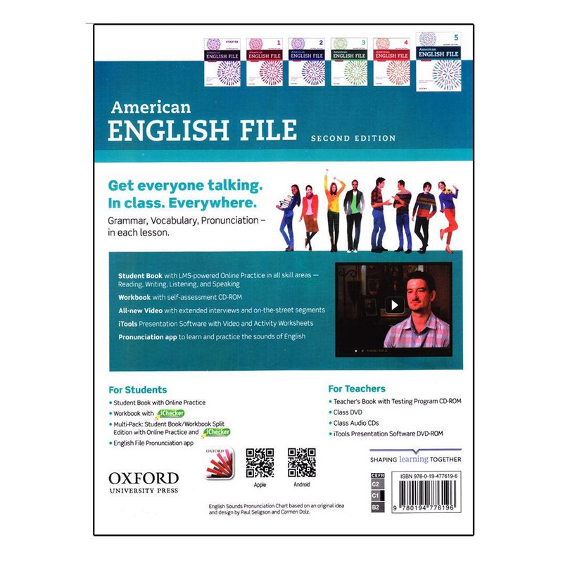 برای اینکه بتوانید بر یک زبان مسلط شوید و به راحتی آن را صحبت کنید، باید برتمام مهارت های چهارگانه و به خصوص گفتار مسلط شوید تا بتوانید در تعاملات خود به طور موثری شرکت پذیر باشید.کتاب American English File یک دوره شش سطحی آموزش زبان انگلیسی برای بزرگسالان است که توانسته موفقیت های بسیاری را کسب کند. این کتاب در بسیاری از آموزشگاه های نه تنها ایران بلکه سرتاسر جهان تدریس می شود، زیرا همانطور که بر همگان روشن است، مکالمه و گفتار یکی از مهم ترین جنبه های یادگیری زبان است، و این مجموعه نیز به تقویت گفتار و مکالمه براساس لهجه آمریکایی می پردازد. کتابهای این مجموعه در بسیاری از موسسات آموزش زبان و توسط اساتید بسیاری تدریس میشود. در هر درس به بررسی یک موضوع خاص پرداخته است. درس ها از بخشهای مختلفی تشکیل شده و با ارائه متن و تمرینهای متنوع سعی در آموزش مهارت های اصلی و واژگان زبان انگلیسی به شیوهای جذاب را دارد. دانشجویان در دوره های آموزش زبان و همه کسانی که به طور حرفه ای در توسعه و استفاده از آزمون های زبان تحصیل می کنند، این منبع را یکی از متون معتبر و جامع در راستای مقاصد و اهداف خود تلقی می کنند.