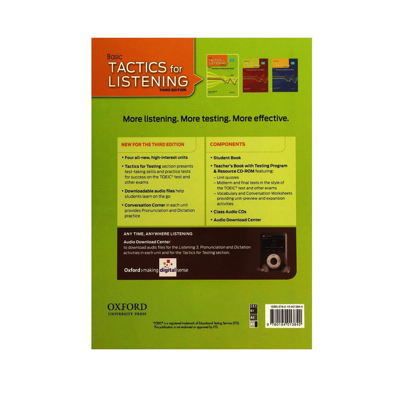 مجموعه کتابهای Tactics for Listening نوشتهی « Jack C Richards and Grant Trew» را انتشارات آکسفورد در سه سطح مقدماتی، متوسط و پیشرفته به منظور تقویت مهارت شنیداری در آموزش زبان انگلیسی تدوین کرده است. تاکید این مجموعه بر لهجهی انگلیسی آمریکایی است. این کتابها اغلب موضوعات روزمره نظیر مشاغل، همسایهها، حملونقل، فیلم، سرگرمی و... میپردازد. به همراه هر کتاب یک لوح فشرده ارائه شده که زبانآموز ابتدا به فایل صوتی گوش میدهد، سپس تمرینهای مربوط به آن را در کتاب انجام میدهد. مطالعهی این مجموعه تقویت همزمان مهارت شنیداری و گفتاری زبانآموز را به همراه خواهد داشت.