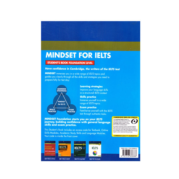 سری کتاب های Mindset for IELTS در چهار سطح از انتشارات کمبریج منتشر گردیده است. این مجموعه مهارت های مختلف زبان آموزان را تقویت کرده و آنان را برای آزمون IELTS کاملا آماده می کند. این کتاب ها شما را با دامنه وسیعی از موضوعات آزمون آیلتس آشنا می‌سازد. این مجموعه بر مبنای سه عامل استراتژی‌های شنیداری، تمرین آزمون و تمرین مهارت ها بنا شده است. هر یک از سطوح این مجموعه از 10 درس با موضوعات مختلف تشکیل شده است. این مجموعه ترکیبی واقعی از راهبرد های یادگیری، مهارت ها و تمرین آزمون است که با انعطاف پذیری بسیار بالای خود موجب شده تا مدرس در انتخاب و تمرکز بر یک موضوع از آزادی عمل بالایی برخوردار باشد.