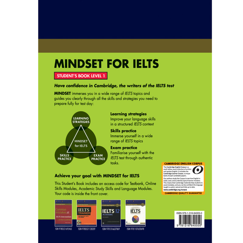مجموعه Mindset for IELTS ، شما را برنده بی چون و چرای آزمون IELTS میکند. ترکیبی منحصر به فرد از محتوای چاپی و آنلاین، این کتب شما را قادر می2سازد تا در طول دوره به انجام تمرینهای کلیدی بپردازید و همه چیز را مطابق با نیازهای خود برگزینید. دروس مبتنی بر موضوع هر یک از چهار مهارت اصلی را به نوبه خود پوشش میدهد. هر سطح شامل استراتژیهای یادگیری، تمرین مهارت و تمرینهای مشابه آزمون اصلی برای کمک به دانشآموزان در رسیدن به هدف خود میباشد. ماژول مهارتهای آنلاین نیز متریالهای سودمندی را علاوه بر مطالب کتب اصلی ارائه میدهد، و نیز ماژولهای اطلاعاتی Corpus به یادگیرندگان کمک میکند تا از اشتباهات رایج دوری کنند. مجموعه MINDSET توسط مدرسان اصلی آزمون آیلتس IELTS طراحی شده است. این کتب، پیوند میان فعالیتها و وجود نمونههای مشابهشان را در آزمون اصلی تضمین میکند، که این به نوبه خود اعتماد به نفس زبان آموزان را تضمین میکند.