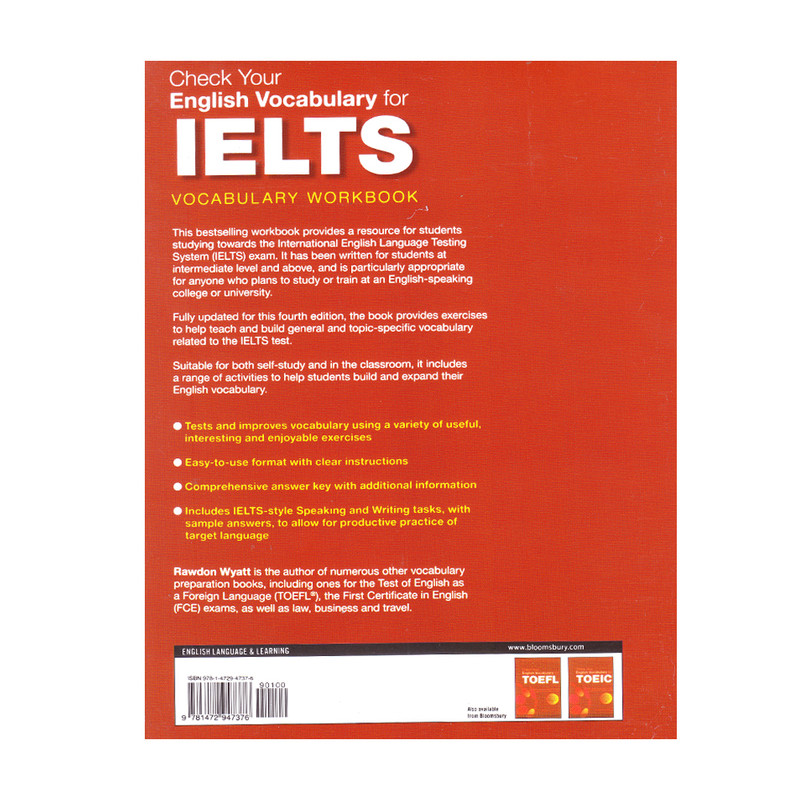 همان طور که مشخص است برای داطلبان آزمون آیلتس منتشر شده است. این کتاب که هم برای آزمون آیلتس جنرال مناسب است و هم برای آزمون آیلتس آکادمیک، به تعداد قابل توجهی از واژگانی که در مهارت های شنیداری، گفتاری، درک مطلب و نوشتاری این آزمون زبان آموزان با آنها برخورد می کنند، می پردازد.کتاب Check Your English Vocabulary for IELTS سعی می کند با استفاده از تمرینات مفیدی که در هر درس ارائه می کند میزان یادگیری را افزایش دهد.