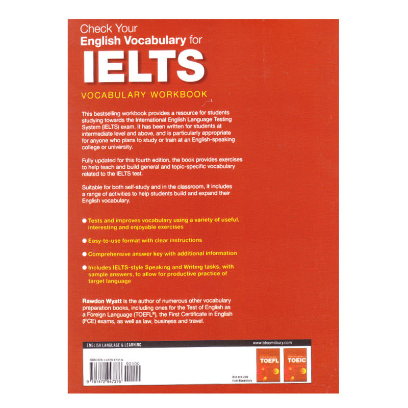 همان طور که مشخص است برای داطلبان آزمون آیلتس منتشر شده است. این کتاب که هم برای آزمون آیلتس جنرال مناسب است و هم برای آزمون آیلتس آکادمیک، به تعداد قابل توجهی از واژگانی که در مهارت های شنیداری، گفتاری، درک مطلب و نوشتاری این آزمون زبان آموزان با آنها برخورد می کنند، می پردازد.کتاب Check Your English Vocabulary for IELTS سعی می کند با استفاده از تمرینات مفیدی که در هر درس ارائه می کند میزان یادگیری را افزایش دهد.