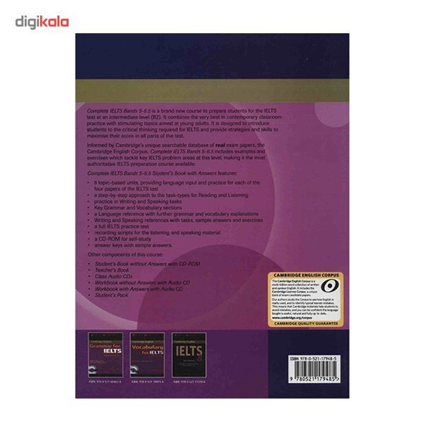 کتاب "Complete IELTS Bands 5-6.5 Students Book " در مجموعهای جدید جهت آماده سازی داوطلبان آزمون آیتلس در سطح متوسط B2 ارائه شده است. این کتاب به بهترین شکل ممکن، تمرینهای کلاسی امروزی را با موضوعات جوانپسند و جذاب ترکیب میکند و به گونهای طراحی شده که تفکر پرسشگر را برای آزمون آیتلس به داوطلبان معرفی میکند. کتاب حاضر راهکارها و مهارتهایی عرضه میکند که دانشجویان را در مسیر کسب بالاترین امتیاز در تمام قسمتهای آزمون، راهنمایی خواهد کرد.